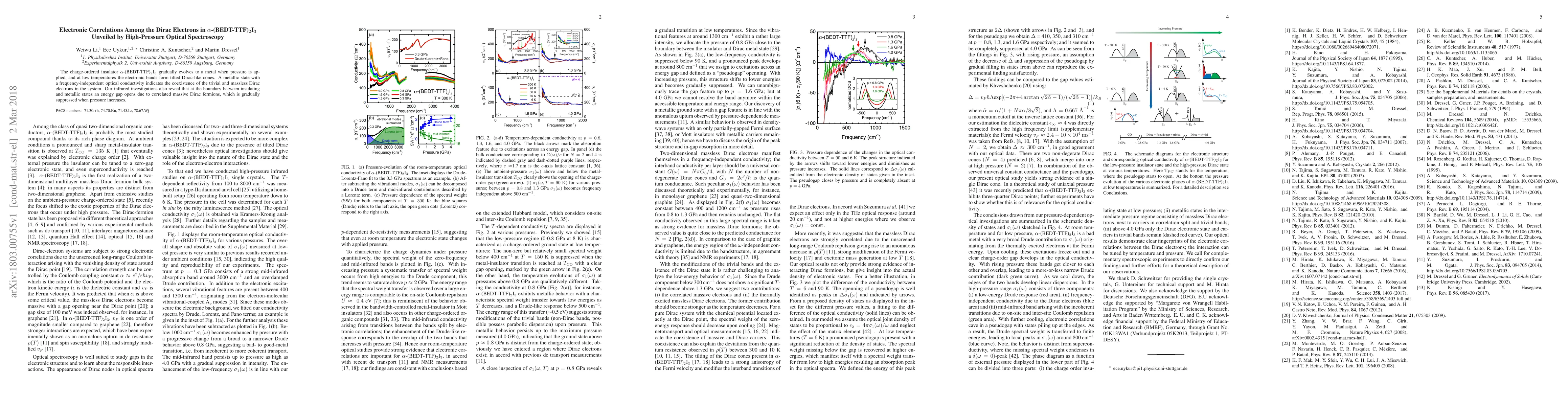 The charge-ordered insulator $\alpha$-(BEDT-TTF)$_2$I$_3$ gradually evolves to a metal when pressure is applied, and at low temperatures the electronic bands form tilted Dirac-like cones. A metallic state with a frequency-independent optical conductivity indicates the coexistence of the trivial and massless Dirac electrons in the system. Our infrared investigations also reveal that at the boundary between insulating and metallic states an energy gap opens due to correlated massive Dirac fermions, which is gradually suppressed when pressure increases.