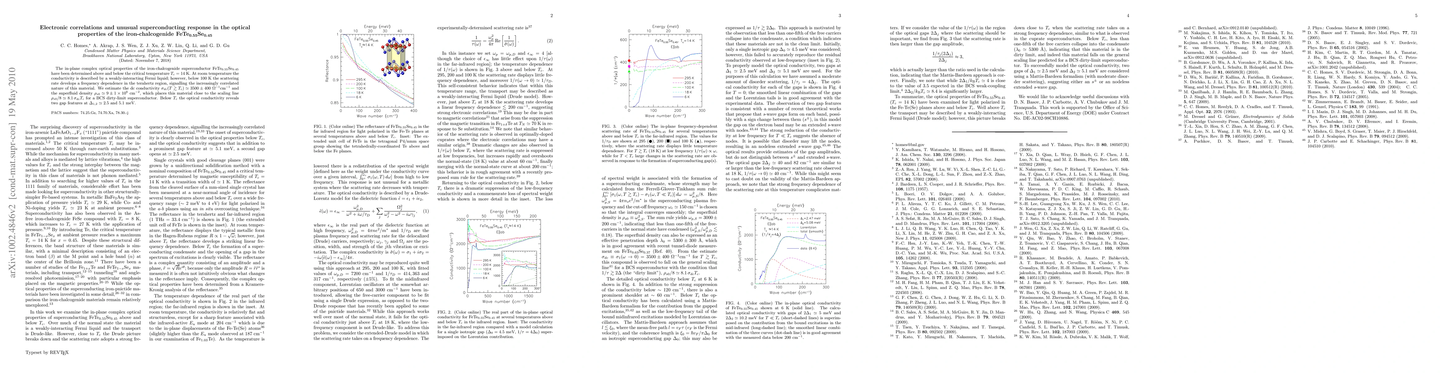 FeTe0.55Se0.45 exhibits correlated behavior below 100 K, with superconducting properties similar to a BCS dirty-limit superconductor, and unusual optical conductivity features at specific energy gaps.