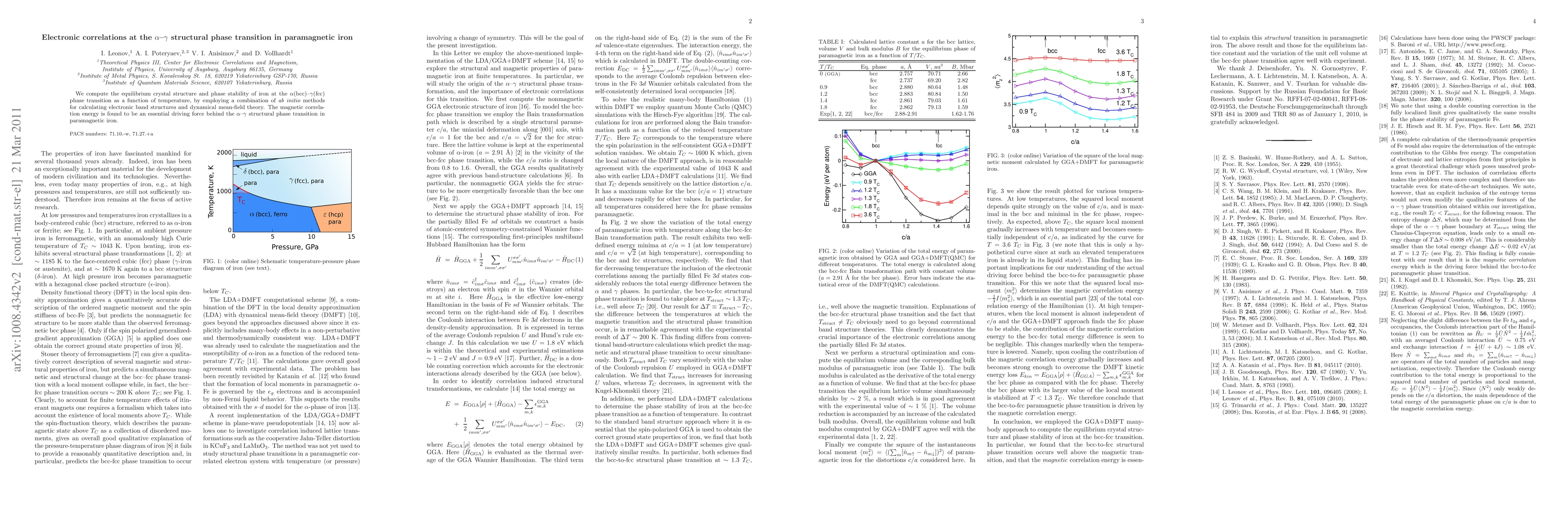 This paper investigates the electronic correlations influencing the alpha-gamma phase transition in paramagnetic iron using ab initio methods and dynamical mean-field theory, revealing that magnetic correlation energy plays a crucial role in this structural transformation.