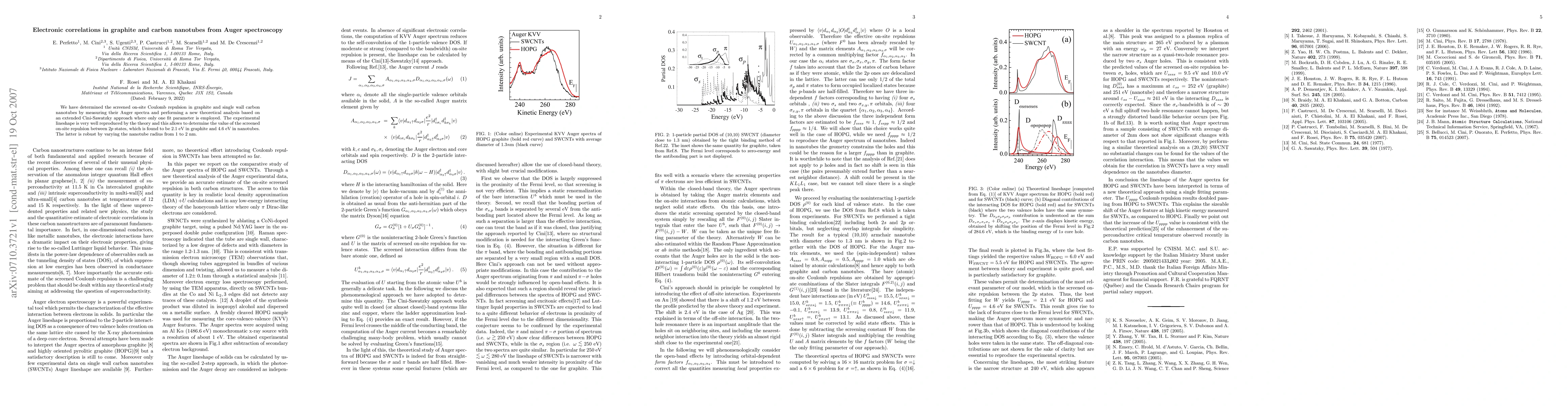 The novelty of this work lies in its successful application of a modified theoretical approach to accurately reproduce experimental Auger spectra for both graphite and carbon nanotubes, providing robust values for the screened on-site repulsion in these materials.