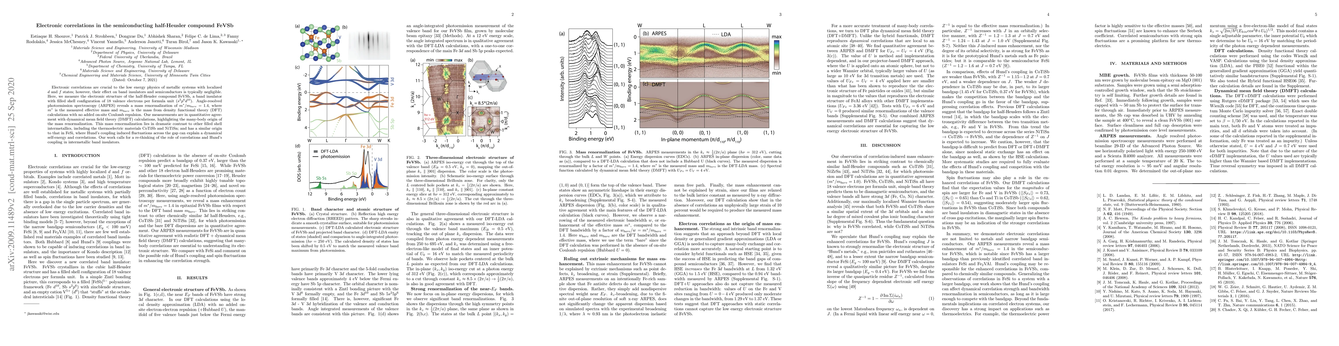 Electronic correlations are crucial to the low energy physics of metallic systems with localized $d$ and $f$ states; however, their effect on band insulators and semiconductors is typically negligible. Here, we measure the electronic structure of the half-Heusler compound FeVSb, a band insulator with filled shell configuration of 18 valence electrons per formula unit ($s^2 p^6 d^{10}$). Angle-resolved photoemission spectroscopy (ARPES) reveals a mass renormalization of $m^{*}/m_{bare}= 1.4$, where $m^{*}$ is the measured effective mass and $m_{bare}$ is the mass from density functional theory (DFT) calculations with no added on-site Coulomb repulsion. Our measurements are in quantitative agreement with dynamical mean field theory (DMFT) calculations, highlighting the many-body origin of the mass renormalization. This mass renormalization lies in dramatic contrast to other filled shell intermetallics, including the thermoelectric materials CoTiSb and NiTiSn; and has a similar origin to that in FeSi, where Hund's coupling induced fluctuations across the gap can explain a dynamical self-energy and correlations. Our work calls for a re-thinking of the role of correlations and Hund's coupling in intermetallic band insulators.