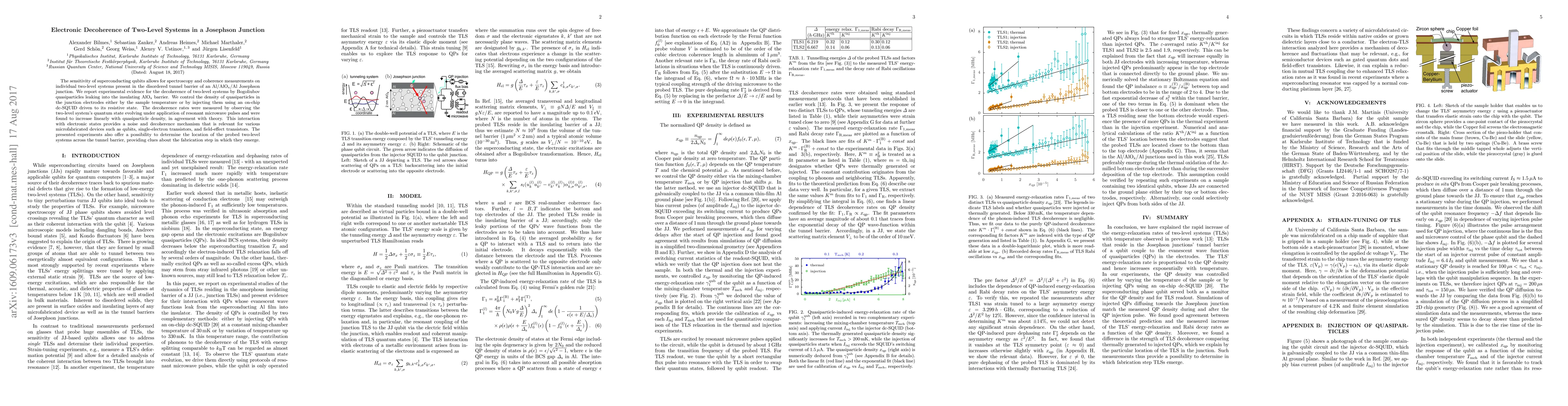 This paper investigates the electronic decoherence in two-level systems within a Josephson junction, finding that quasiparticles leaking into the insulating barrier cause decoherence. The study reveals a linear increase in decoherence rates with quasiparticle density, offering insights into noise mechanisms in microfabricated devices.