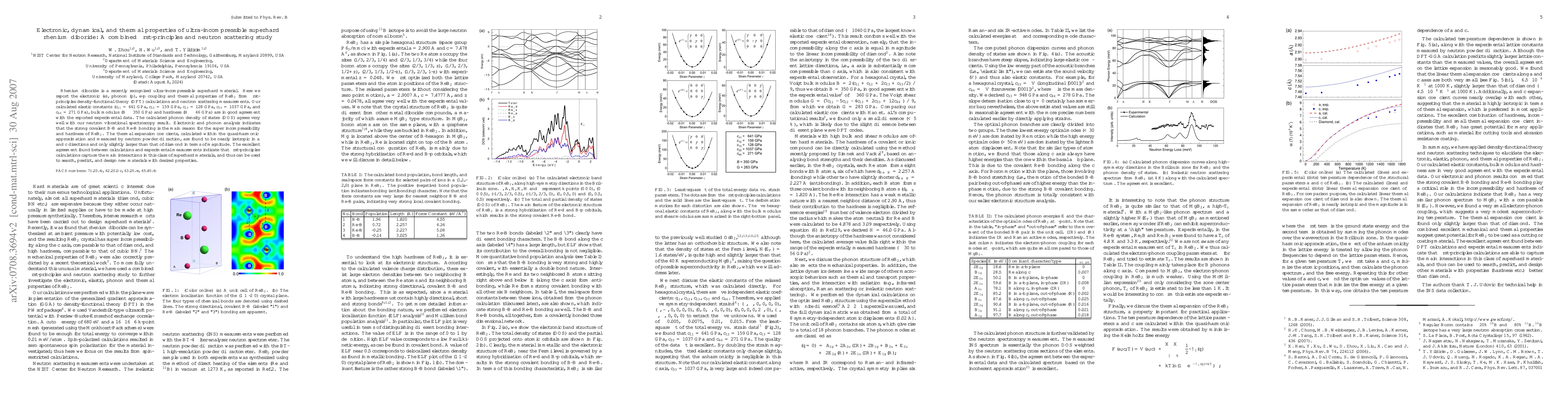 This study combines first-principles calculations and neutron scattering to investigate the electronic, dynamical, and thermal properties of the ultra-incompressible superhard material rhenium diboride (ReB$_2$). The results show that strong covalent bonding is responsible for its exceptional hardness and incompressibility, with calculated elastic constants and thermal expansion coefficients closely matching experimental data.