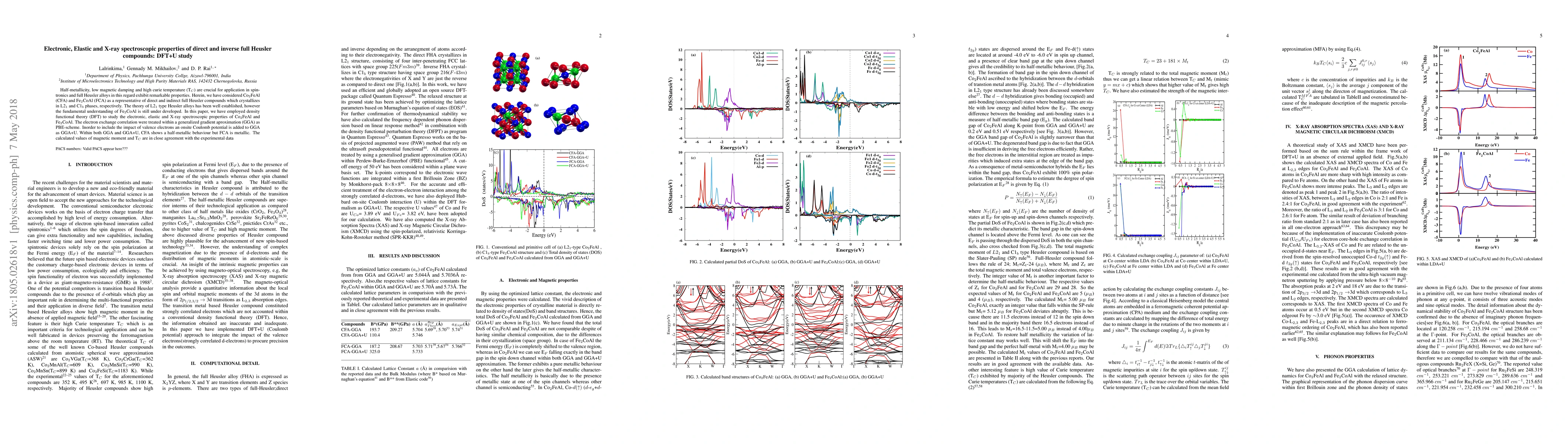 Half-metallicity, low magnetic damping and high curie temperature (TC) are crucial for application in spintronics and full Heusler alloys in this regard exhibit remarkable properties. Herein, we have considered Co2FeAl (CFA) and Fe2CoAl (FCA) as a representative of direct and indirect full Heusler compounds which crystallises in L21 and C1b phases, respectively. The theory of L21 type Heusler alloys has been well established, however the fundamental understanding of Fe2CoAl is still under developed. In this paper, we have employed density functional theory (DFT) to study the electronic, elastic and X-ray spectroscopic properties of Co2FeAl and Fe2CoAl. The electron exchange correlation were treated within a generalized gradient approximation (GGA) as PBE-scheme. In order to include the impact of valence electrons an onsite Coulomb potential is added to GGA as GGA+U. Within both GGA and GGA+U, CFA shows a half-metallic behaviour but FCA is metallic. The calculated values of magnetic moment and TC are in close agreement with the experimental data.