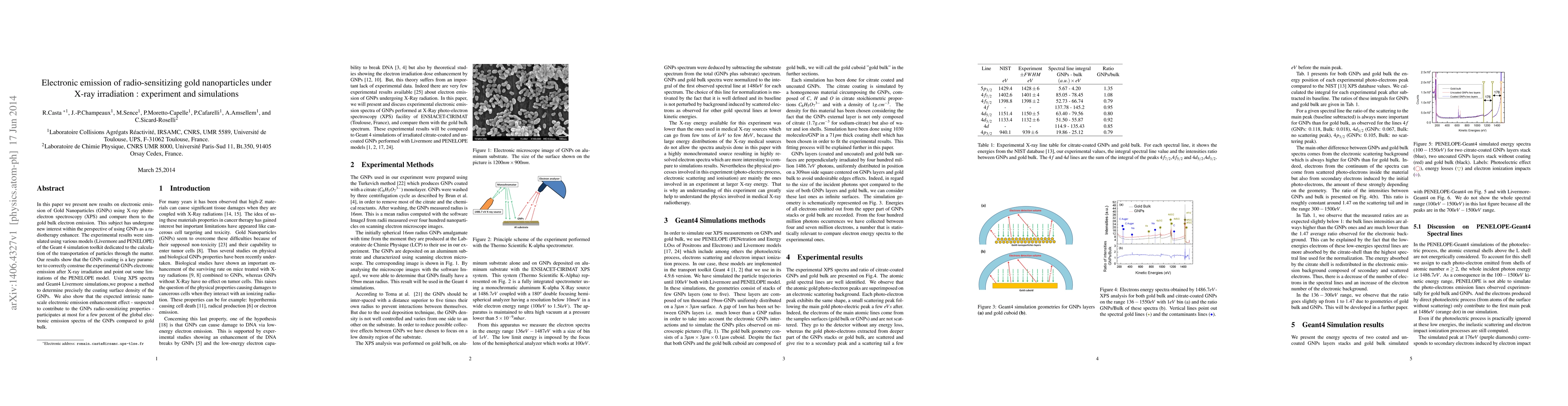 This paper investigates the electronic emission of gold nanoparticles (GNPs) under X-ray irradiation using XPS and simulations, revealing that GNPs coating significantly influences the emission. The study highlights the limitations of the PENELOPE model and proposes a method to determine coating surface density, concluding that the GNPs' radio-sensitizing properties are only marginally enhanced by intrinsic nano-scale electronic emission.