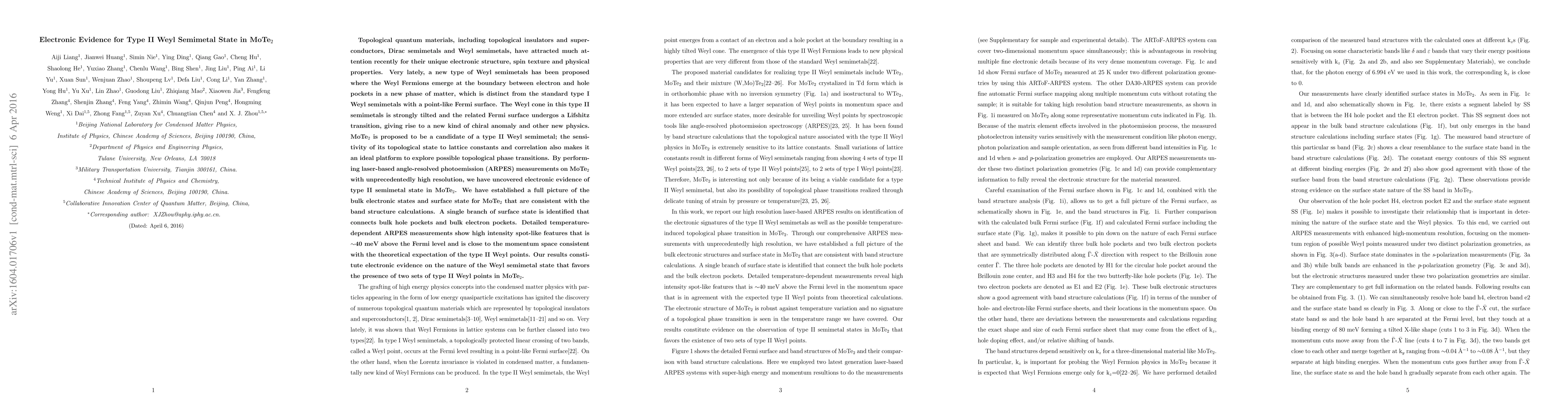This work distinguishes itself by presenting direct electronic evidence for type II Weyl fermions in MoTe2, a promising material for exploring novel topological phases and phenomena.