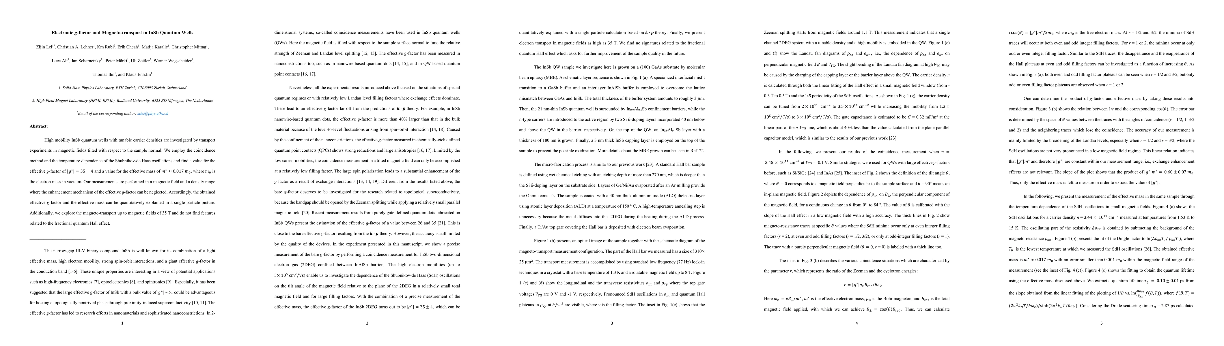 This study investigates the electronic g-factor and magneto-transport in high mobility InSb quantum wells, revealing an effective g-factor of 35±4 and an effective mass of 0.017 m₀. The findings are explained using a single particle model, and no fractional quantum Hall effect features are observed up to 35 T.