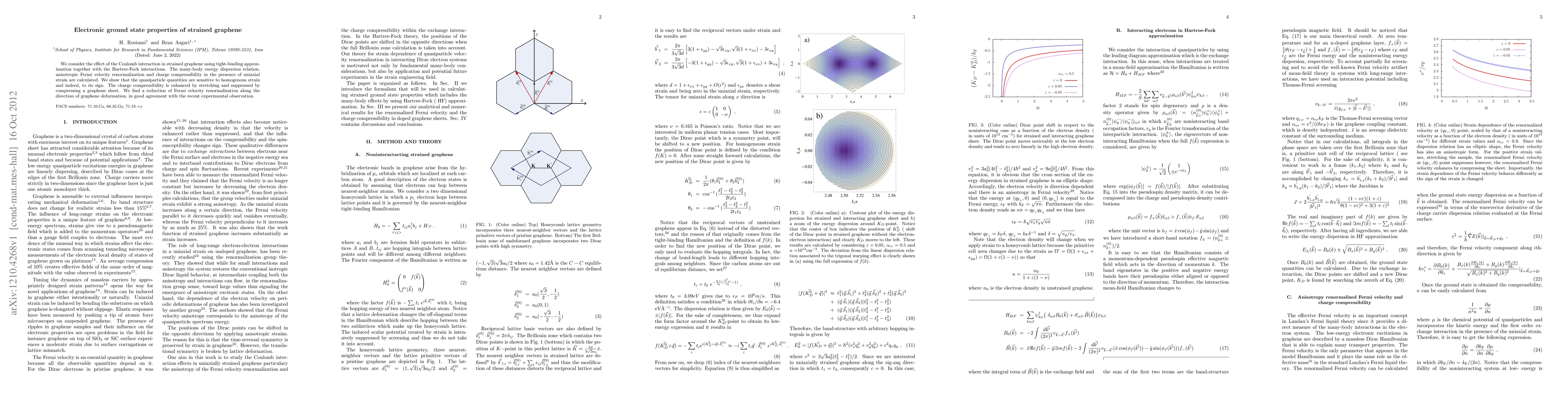 This research investigates the impact of strain on graphene's electronic properties using tight-binding approximation and Hartree-Fock interactions. It reveals that strain alters quasiparticle quantities, enhances charge compressibility with stretching, and suppresses it with compression. The study finds a reduction in Fermi velocity renormalization along the strain direction, aligning with recent experiments.