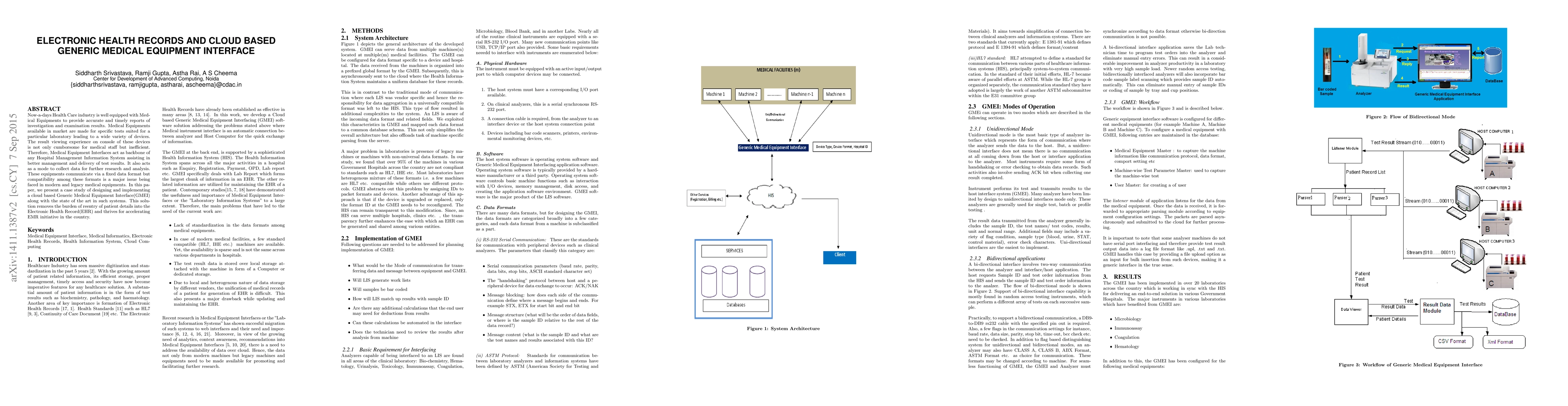 A cloud-based Generic Medical Equipment Interface (GMEI) is designed to improve data sharing between medical equipment and electronic health records, reducing burden on staff and accelerating EMR initiatives.