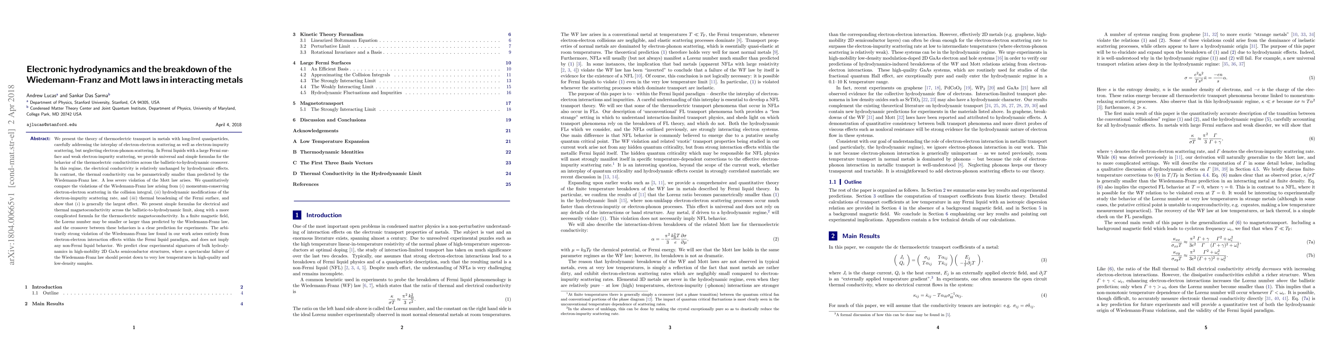 We present the theory of thermoelectric transport in metals with long-lived quasiparticles, carefully addressing the interplay of electron-electron scattering as well as electron-impurity scattering, but neglecting electron-phonon scattering. In Fermi liquids with a large Fermi surface and weak electron-impurity scattering, we provide universal and simple formulas for the behavior of the thermoelectric conductivities across the ballistic-to-hydrodynamic crossover. In this regime, the electrical conductivity is relatively unchanged by hydrodynamic effects. In contrast, the thermal conductivity can be parametrically smaller than predicted by the Wiedemann-Franz law. A less severe violation of the Mott law arises. We quantitatively compare the violations of the Wiedemann-Franz law arising from (i) momentum-conserving electron-electron scattering in the collision integral, (ii) hydrodynamic modifications of the electron-impurity scattering rate, and (iii) thermal broadening of the Fermi surface, and show that (i) is the largest. We present simple formulas for electrical and thermal magnetoconductivity across the ballistic-to-hydrodynamic limit, along with a more complicated formula for the thermoelectric magnetoconductivity. In a finite magnetic field, the Lorenz number may be smaller or larger than predicted by the Wiedemann-Franz law, and the crossover between these behaviors is a clear prediction for experiments. The arbitrarily strong violation of the Wiedemann-Franz law found in our work arises entirely from electron-electron interaction effects within the Fermi liquid paradigm, and does not imply any non-Fermi liquid behavior. We predict clear experimental signatures of bulk hydrodynamics in high-mobility 2D GaAs semiconductor structures, where failure of the Wiedemann-Franz law should persist down to very low temperatures in high-quality, low-density samples.