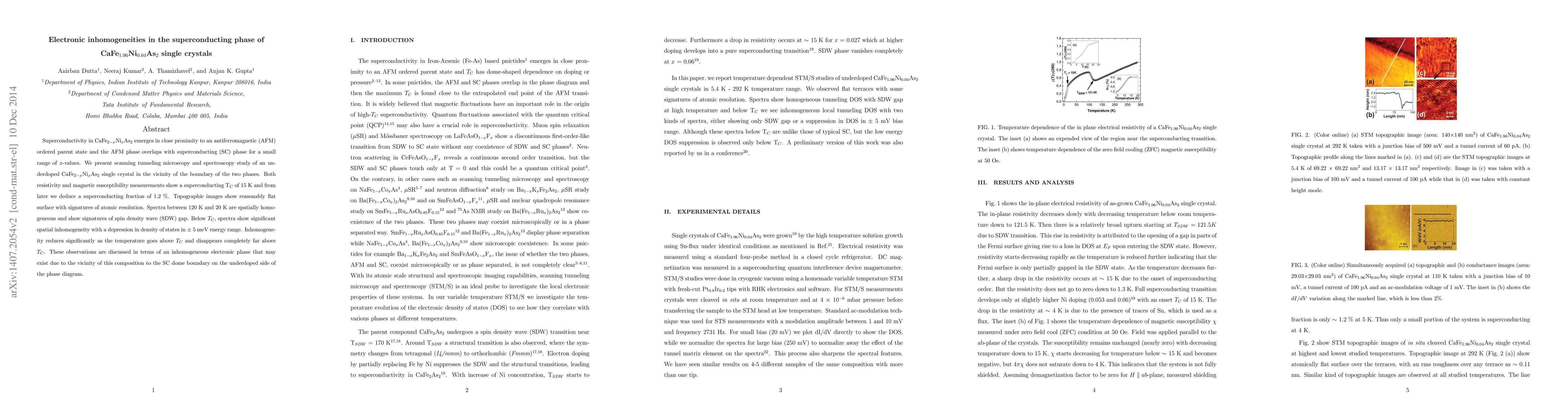 Superconductivity in Iron-Arsenic based pnictides emerges in close proximity to an antiferromagnetic (AFM)ordered parent state and the AFM phase overlaps with superconducting (SC) phase in some pnictides for certain range of doping. CaFe2-xNixAs2 belongs to this category, where both the phases overlap. Here we use scanning tunneling microscopy and spectroscopy to investigate the local electronic properties of uderdoped CaFe1.96Ni0.04As2 single crystals in the vicinity of the boundary of the two phases. Both resistivity and magnetic measurements show that a tiny portion (~ 1.2 %) of this compound becomes superconductor below the SC onset temperature TC ~ 15 K. Topographic images show reasonably flat surface with signatures of atomic resolution. High temperature spectra are spatially homogeneous and show signatures of spin density wave (SDW) gap with a finite density of states near the Fermi energy. Below TC, spectra show significant spatial inhomogeneity with a SDW gap everywhere but at some locations we also see an asymmetric or symmetric depression in ~ +/- 5 meV energy range together with the SDW gap. Inhomogeneity reduces significantly as the temperature goes above TC and disappears completely far above TC. These observations are discussed in terms of an inhomogeneous electronic phase that may exist due to the vicinity of this composition to the SC dome boundary on the underdoped side of the phase diagram.