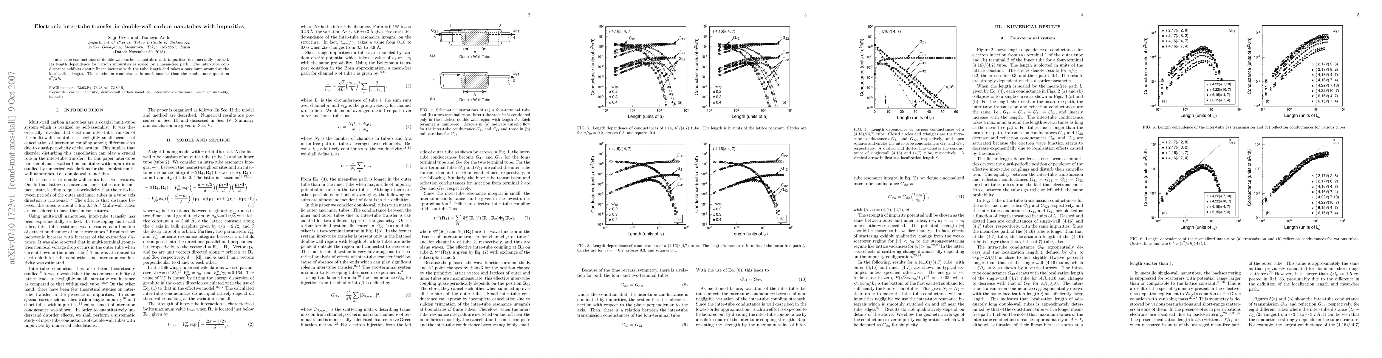 Summary: This study numerically investigates the inter-tube conductance in double-wall carbon nanotubes with impurities, revealing a significant linear increase with length, reaching a maximum at a specific localization length, though this maximum is much lower than the conductance quantum $e^2/\pi\hbar$.
