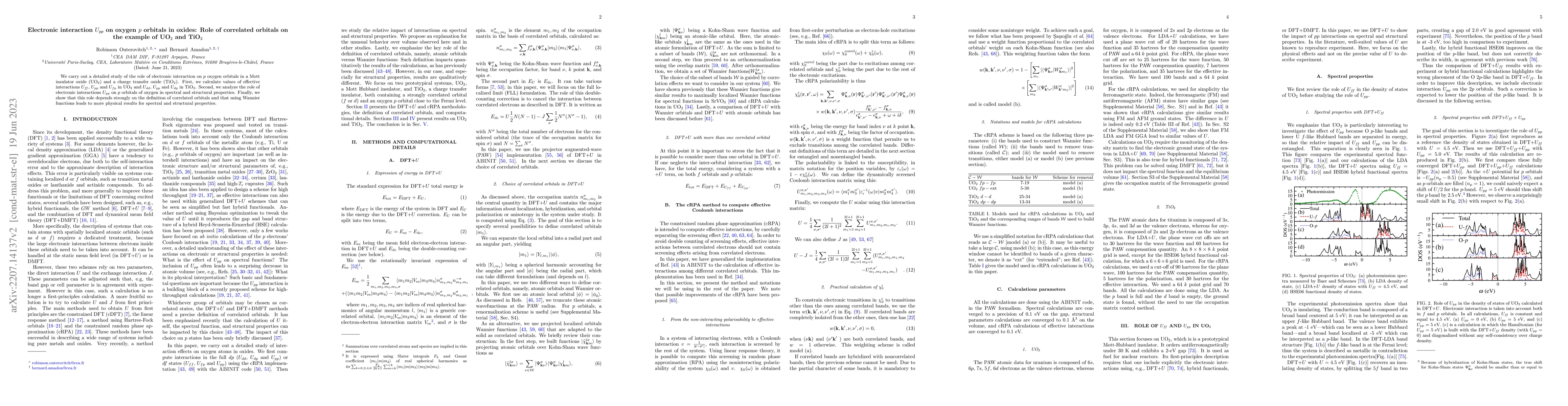 We carry out a detailed study of the role of electronic interaction on $p$ oxygen orbitals in a Mott insulator oxide (UO$_2$) and a charge transfer oxide (TiO$_2$). First, we calculate values of effective interactions \Uff, \Upp{} and $U_{fp}$ in UO$_2$ and \Udd{}, \Upp{} and $U_{dp}$ in TiO$_2$. Second, we analyze the role of electronic interactions \Upp{} on $p$ orbitals of oxygen in spectral and structural properties. Finally, we show that this role depends strongly on the definition of correlated orbitals and that using Wannier functions leads to more physical results for spectral and structural properties.