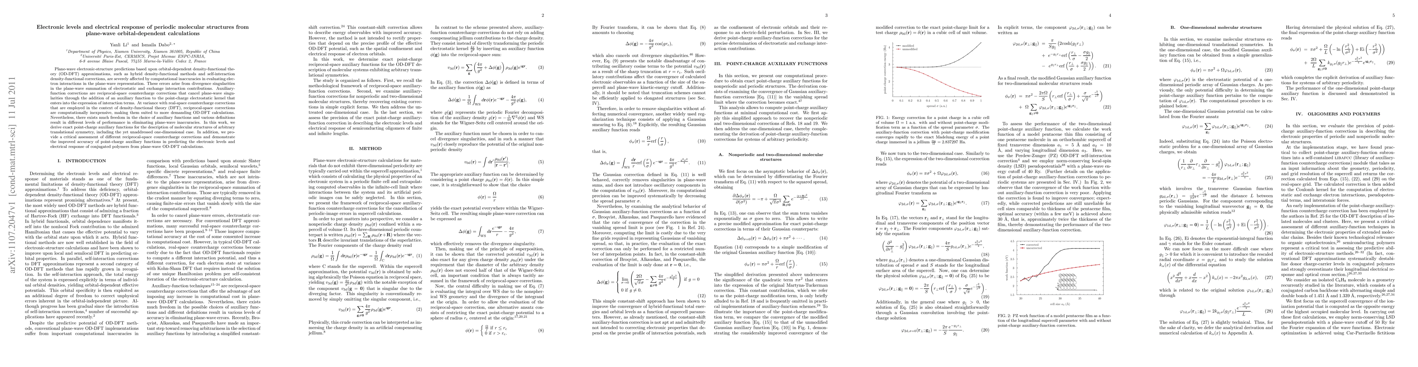 Plane-wave electronic-structure predictions based upon orbital-dependent density-functional theory (OD-DFT) approximations, such as hybrid density-functional methods and self-interaction density-functional corrections, are severely affected by computational inaccuracies in evaluating electron interactions in the plane-wave representation. These errors arise from divergence singularities in the plane-wave summation of electrostatic and exchange interaction contributions. Auxiliary-function corrections are reciprocal-space countercharge corrections that cancel plane-wave singularities through the addition of an auxiliary function to the point-charge electrostatic kernel that enters into the expression of interaction terms. At variance with real-space countercharge corrections that are employed in the context of density-functional theory (DFT), reciprocal-space corrections are computationally inexpensive, making them suited to more demanding OD-DFT calculations. Nevertheless, there exists much freedom in the choice of auxiliary functions and various definitions result in different levels of performance in eliminating plane-wave inaccuracies. In this work, we derive exact point-charge auxiliary functions for the description of molecular structures of arbitrary translational symmetry, including the yet unaddressed one-dimensional case. In addition, we provide a critical assessment of different reciprocal-space countercharge corrections and demonstrate the improved accuracy of point-charge auxiliary functions in predicting the electronic levels and electrical response of conjugated polymers from plane-wave OD-DFT calculations.