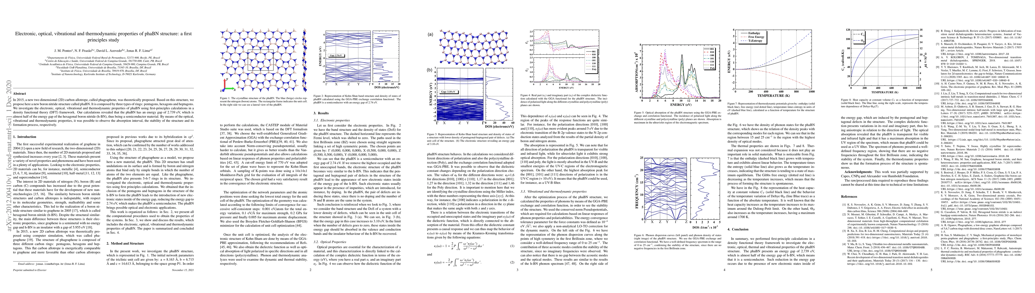 This study investigates the electronic, optical, vibrational, and thermodynamic properties of a newly proposed 2D boron nitride structure called phaBN using first-principles DFT calculations. The phaBN structure, composed of pentagons, hexagons, and heptagons, exhibits a semiconductor behavior with a 2.739 eV energy gap, nearly half that of hexagonal boron nitride.
