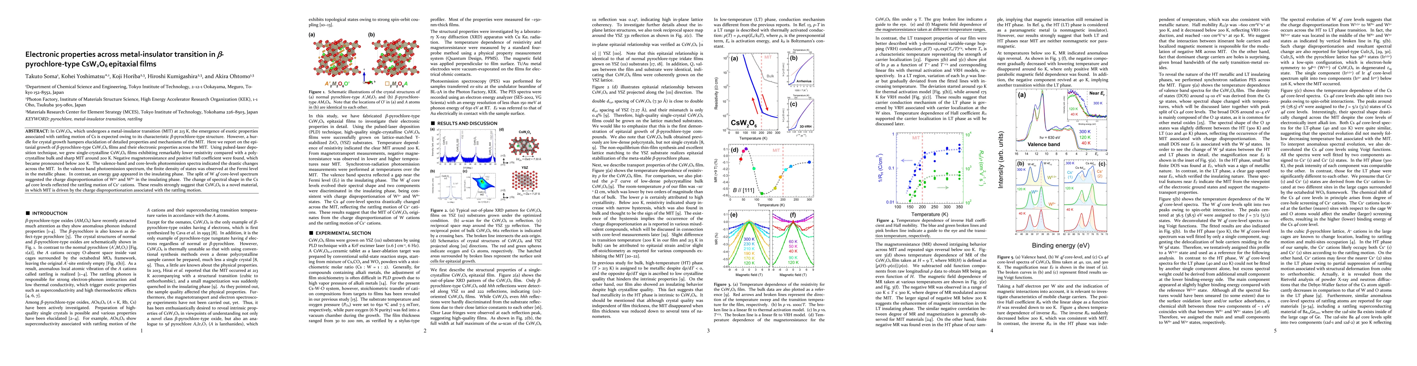 Researchers grew single-crystalline CsW2O6 films exhibiting low resistivity and sharp metal-insulator transition at 200 K, with negative magnetoresistance and positive Hall coefficient observed below this temperature.