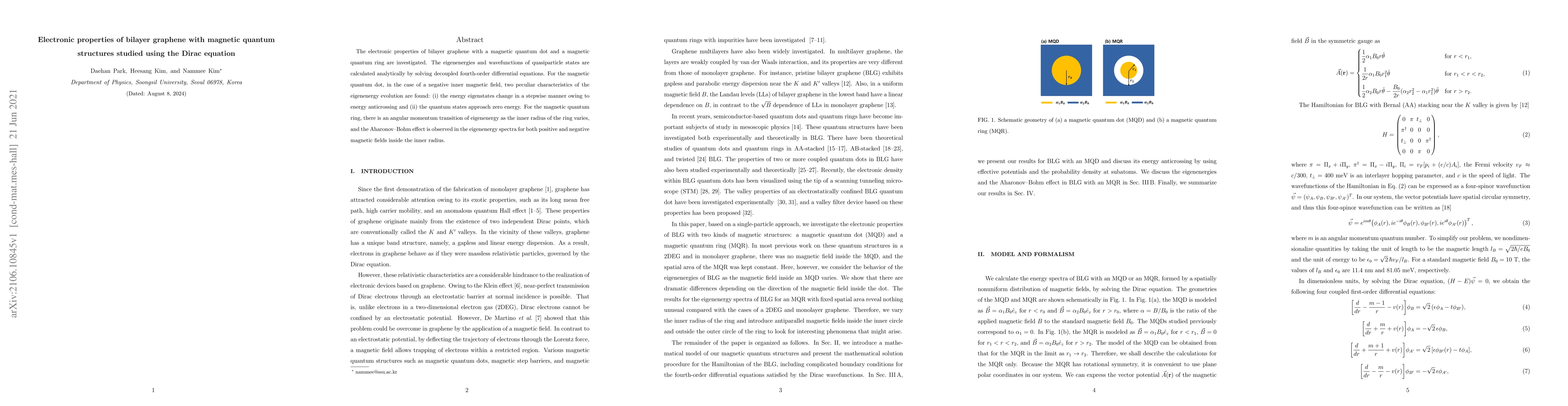 Researchers studied the electronic properties of bilayer graphene with magnetic quantum structures, discovering peculiar energy behaviors and the Aharonov-Bohm effect in different magnetic fields.