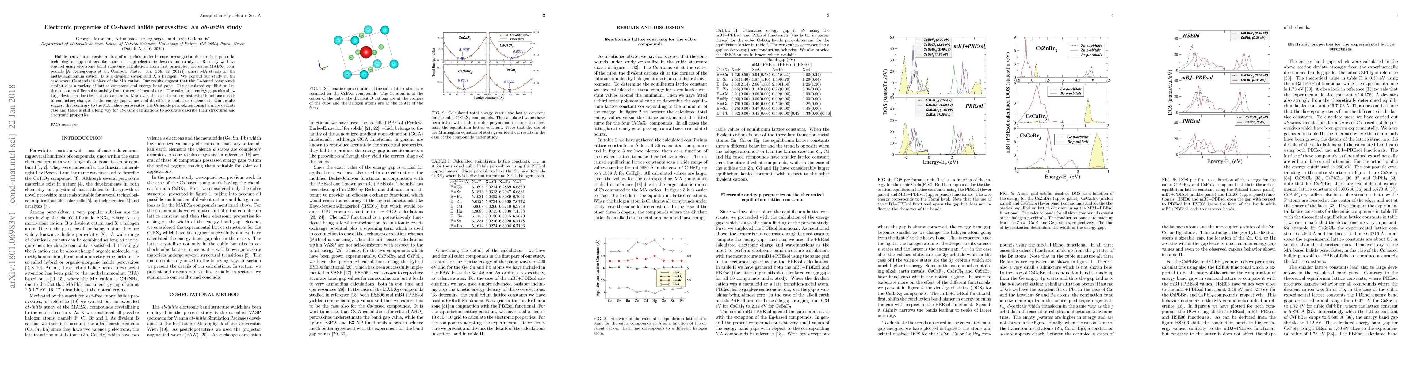 This study investigates the electronic properties of Cs-based halide perovskites using ab-initio calculations. The results indicate substantial discrepancies between calculated and experimental lattice constants and energy band gaps, suggesting that Cs halide perovskites are more challenging to accurately describe than methylammonium counterparts.