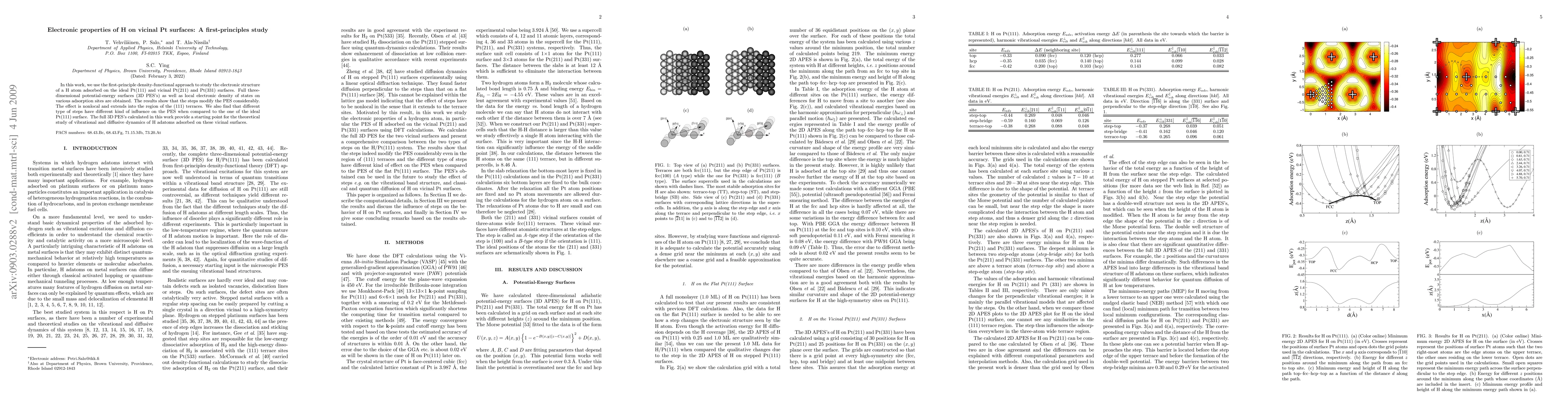 Researchers used first-principle density-functional approach to study H atom adsorption on Pt(111) and vicinal surfaces, finding that steps modify the electronic structure in a nonlocal way.