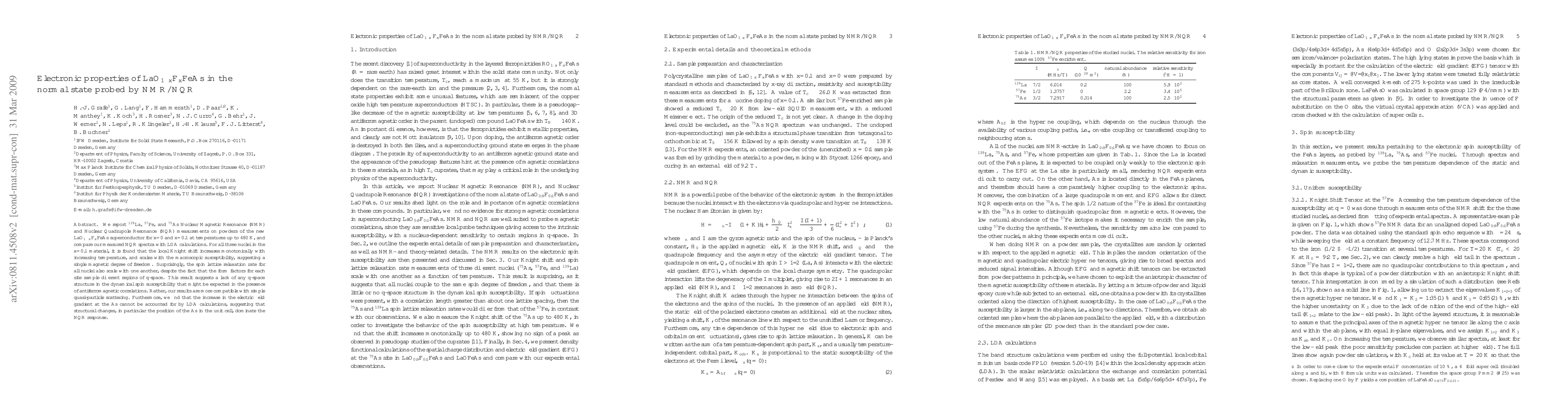 The study uses NMR and NQR measurements on LaO1-xFxFeAs superconductor powders to examine electronic properties in the normal state for x=0 and x=0.1 at high temperatures up to 480K. Key findings include a monotonic increase in Knight shift with temperature, suggesting a single magnetic degree of freedom, and unanticipated scaling of spin lattice relaxation rates across different nuclei, indicating simple quasi-particle scattering rather than antiferromagnetic correlations. Additionally, LDA calculations fail to explain changes in electric field gradient at the As, pointing to structural changes, especially As position, as dominant factors in NQR response.