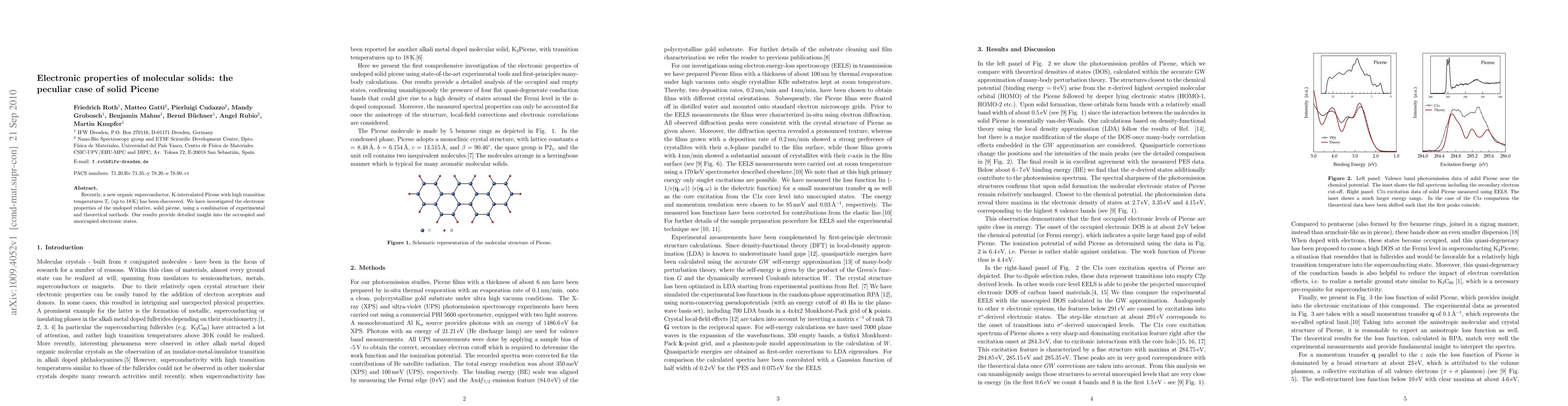 Recently, a new organic superconductor, K-intercalated Picene with high transition temperatures $T_c$ (up to 18\,K) has been discovered. We have investigated the electronic properties of the undoped relative, solid picene, using a combination of experimental and theoretical methods. Our results provide detailed insight into the occuopied and unoccupied electronic states.