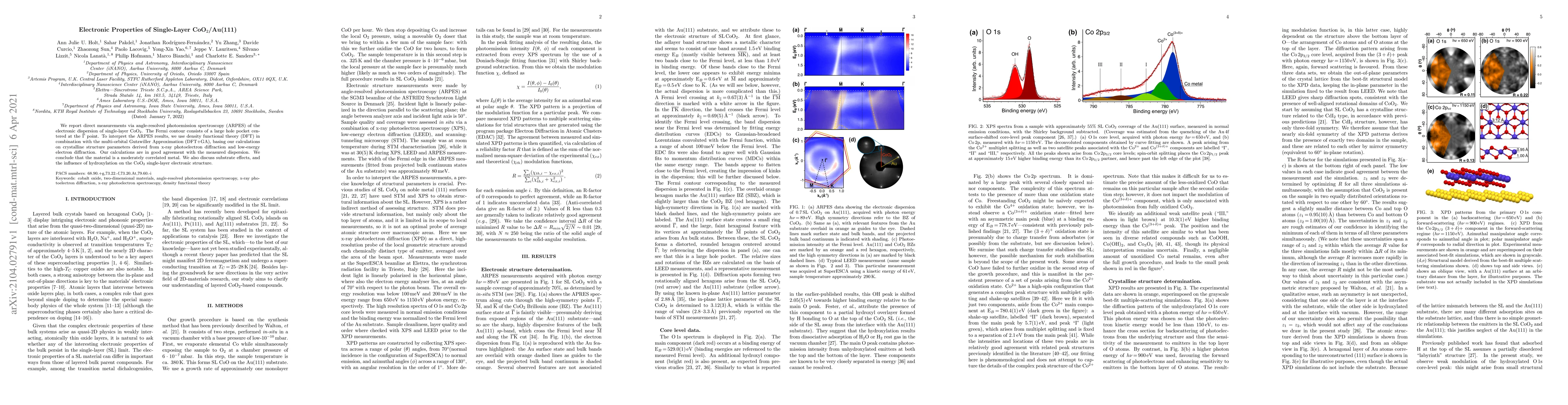 We report direct measurements via angle-resolved photoemission spectroscopy (ARPES) of the electronic dispersion of single-layer CoO$_2$. The Fermi contour consists of a large hole pocket centered at the $\overline{\Gamma}$ point. To interpret the ARPES results, we use density functional theory (DFT) in combination with the multi-orbital Gutzwiller Approximation (DFT+GA), basing our calculations on crystalline structure parameters derived from x-ray photoelectron diffraction and low-energy electron diffraction. Our calculations are in good agreement with the measured dispersion. We conclude that the material is a moderately correlated metal. We also discuss substrate effects, and the influence of hydroxylation on the CoO$_2$ single-layer electronic structure.