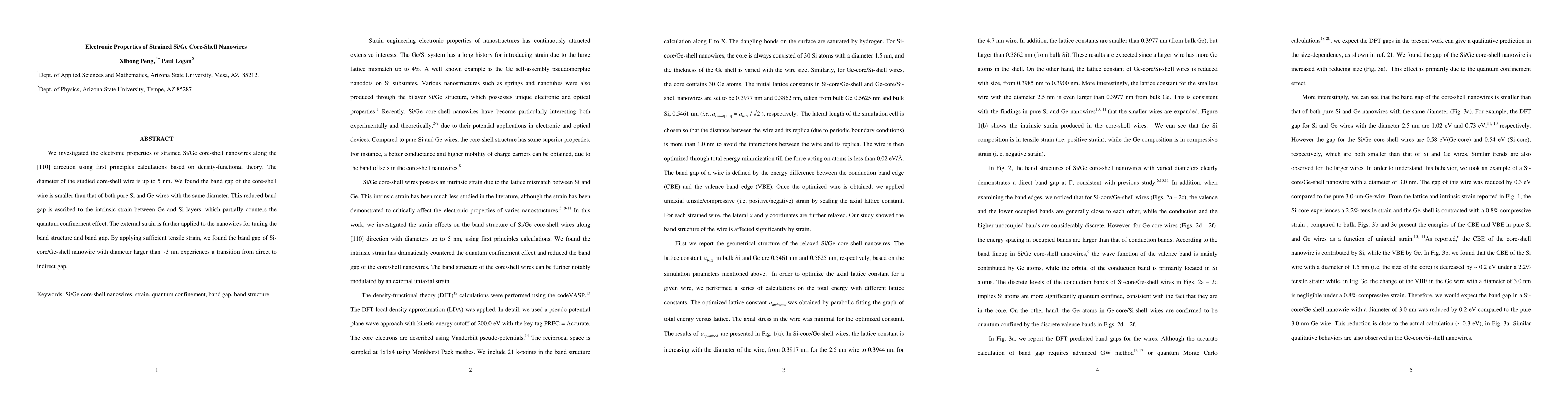 This work presents a novel approach to studying the electronic properties of core-shell nanowires using first-principles calculations.