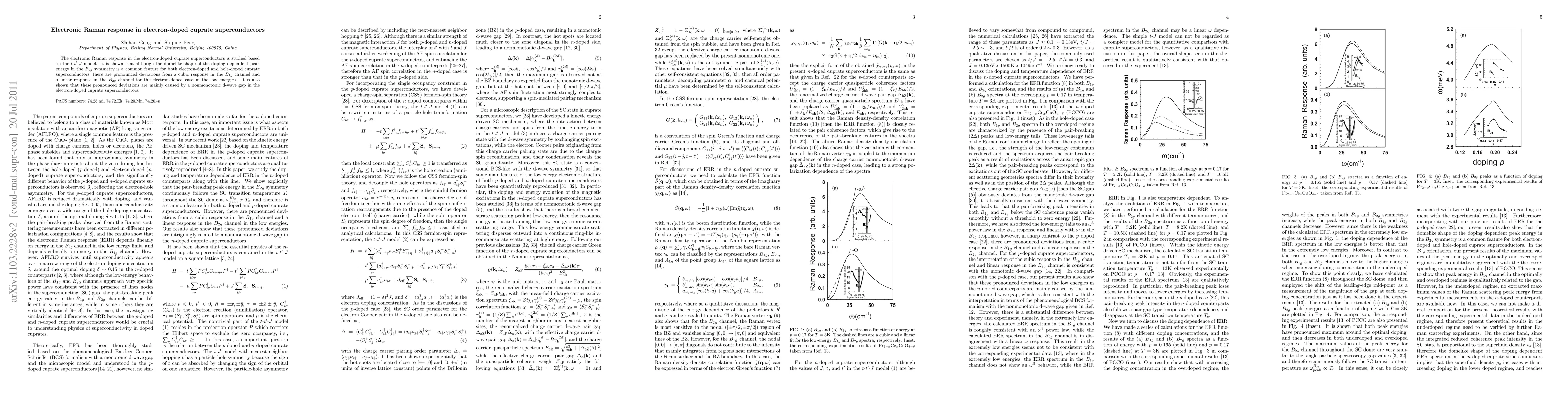 This study investigates the electronic Raman response in electron-doped cuprate superconductors using the $t$-$t'$-$J$ model, revealing significant deviations in the $B_{1g}$ and $B_{2g}$ channels compared to hole-doped counterparts, primarily due to a nonmonotonic d-wave gap.
