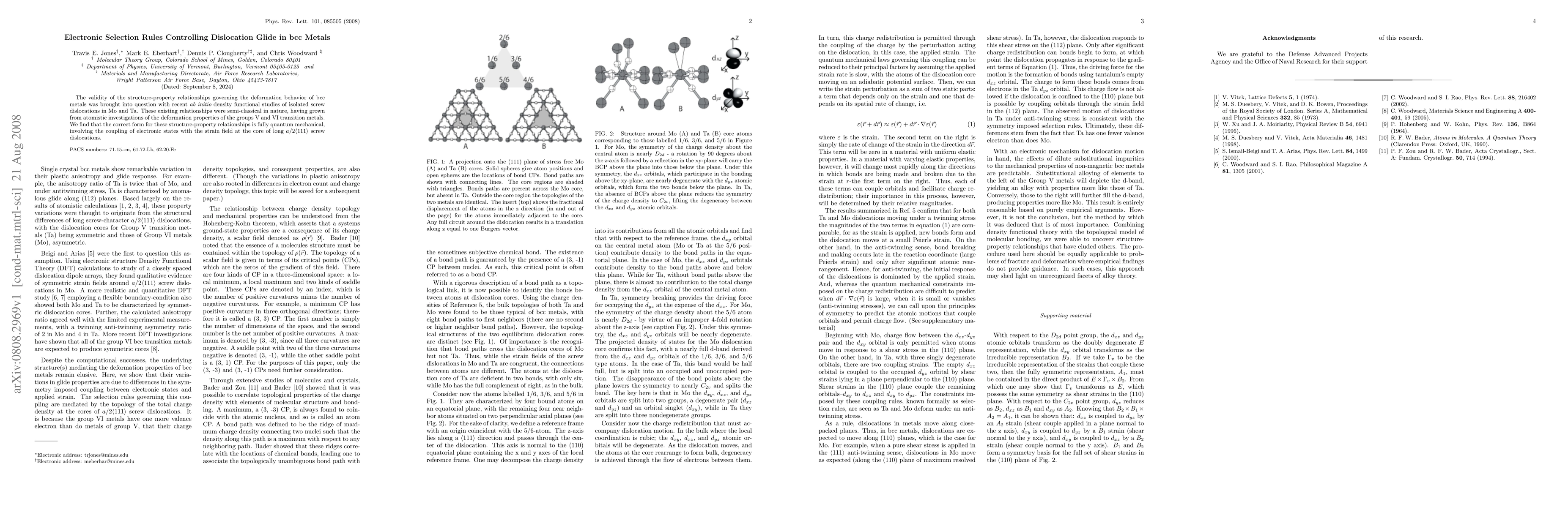 This paper reveals that quantum mechanical effects, specifically the coupling of electronic states with dislocation strain fields, govern the deformation behavior of bcc metals like Mo and Ta, challenging traditional semiclassical structure-property relationships.