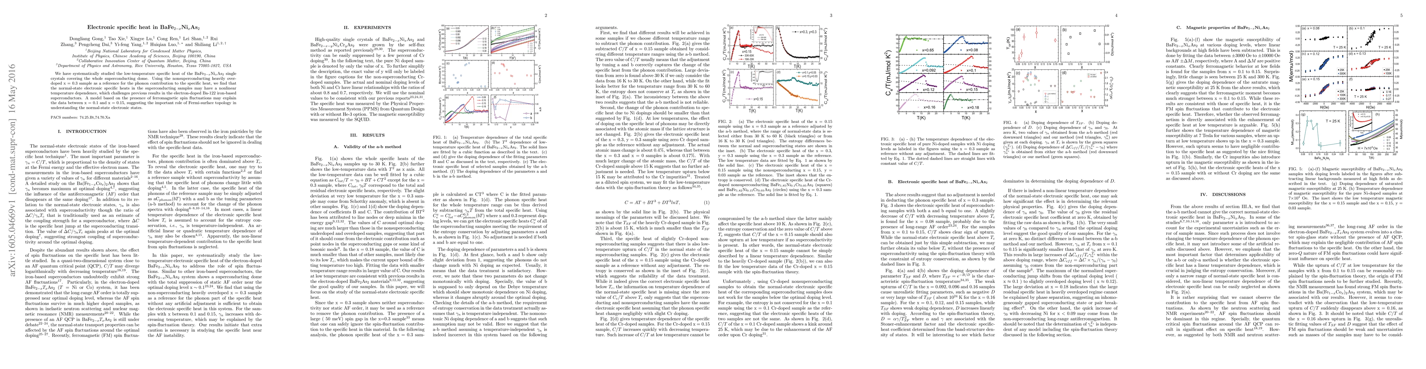 This study investigates the electronic specific heat in BaFe$_{2-x}$Ni$_x$As$_2$ single crystals, revealing a nonlinear temperature dependence in superconducting samples that challenges prior findings. The data between x = 0.1 and x = 0.15 suggest that ferromagnetic spin fluctuations, influenced by Fermi-surface topology, may explain the observed behavior.