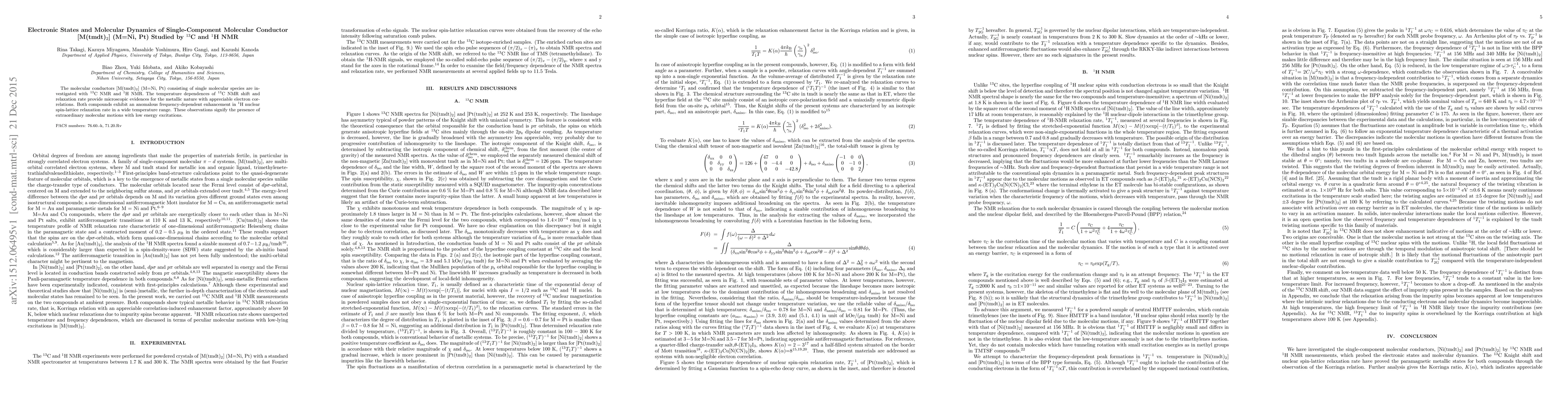This research uses $^{13}$C and $^1$H NMR to study molecular conductors [M(tmdt)$_2$] (M=Ni, Pt). It finds evidence of metallic nature with electron correlations, and unusual molecular motions with low energy excitations, indicated by anomalous frequency-dependent relaxation rate enhancements.
