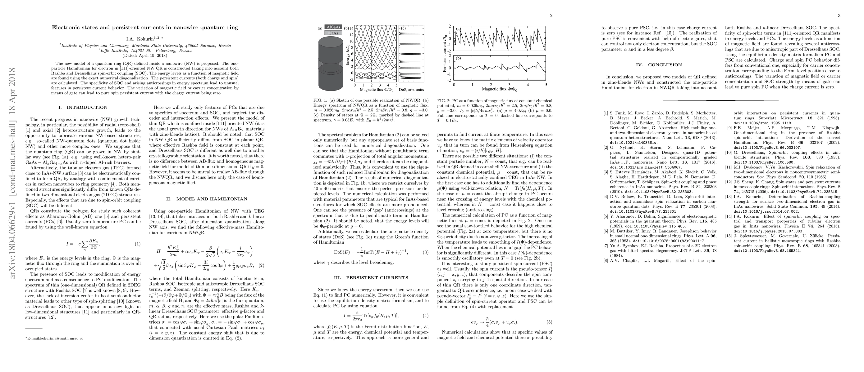 This paper proposes a model for a quantum ring within a nanowire, considering both Rashba and Dresselhaus spin-orbit coupling. It finds energy levels and calculates persistent currents, revealing unique behaviors due to spin-orbit coupling, including the possibility of pure spin persistent current with zero charge current.