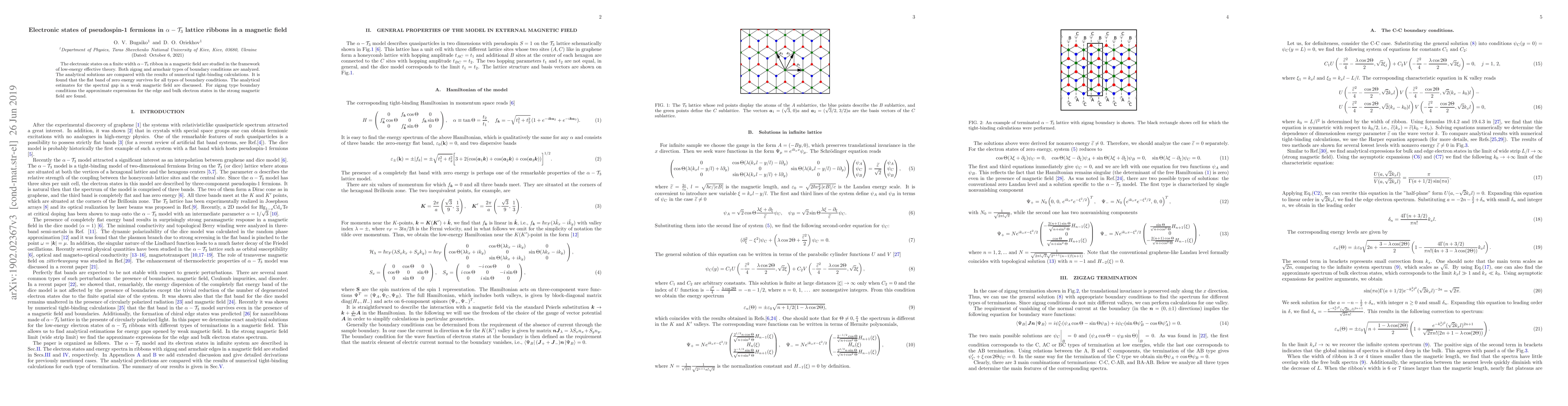 Researchers studied electronic states in alpha-T3 lattice ribbons under a magnetic field, finding that a flat zero-energy band survives regardless of boundary conditions, and derived expressions for edge and bulk electron states in strong fields.
