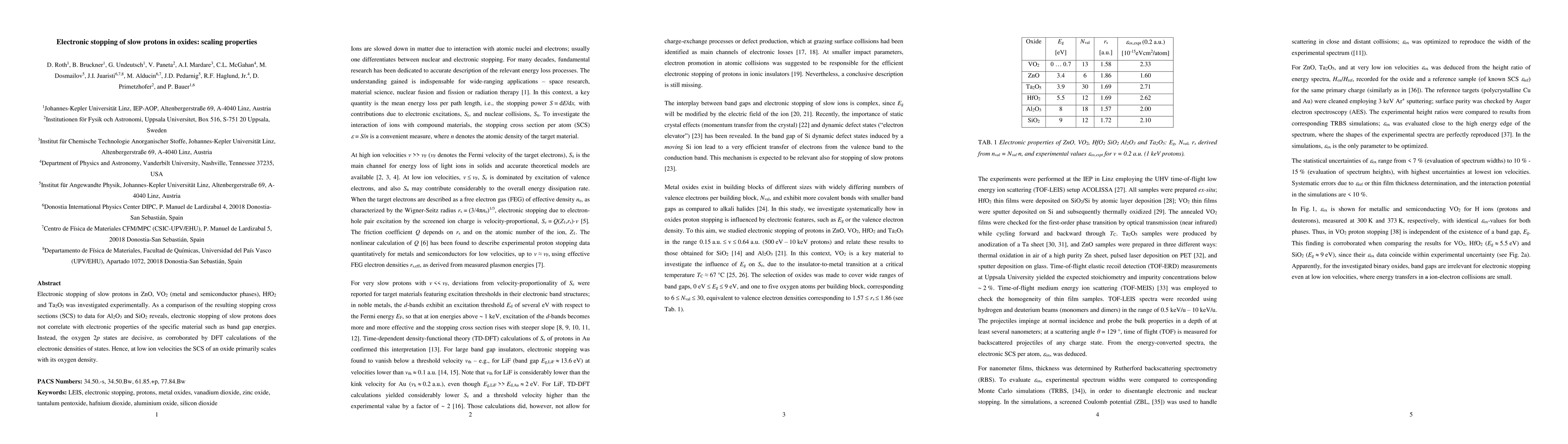 This study investigates the electronic stopping of slow protons in various oxides, finding that the stopping cross sections do not correlate with the electronic properties like band gap energies. Instead, the oxygen 2p states and the oxygen density of the material primarily determine the stopping behavior, as confirmed by density functional theory calculations.
