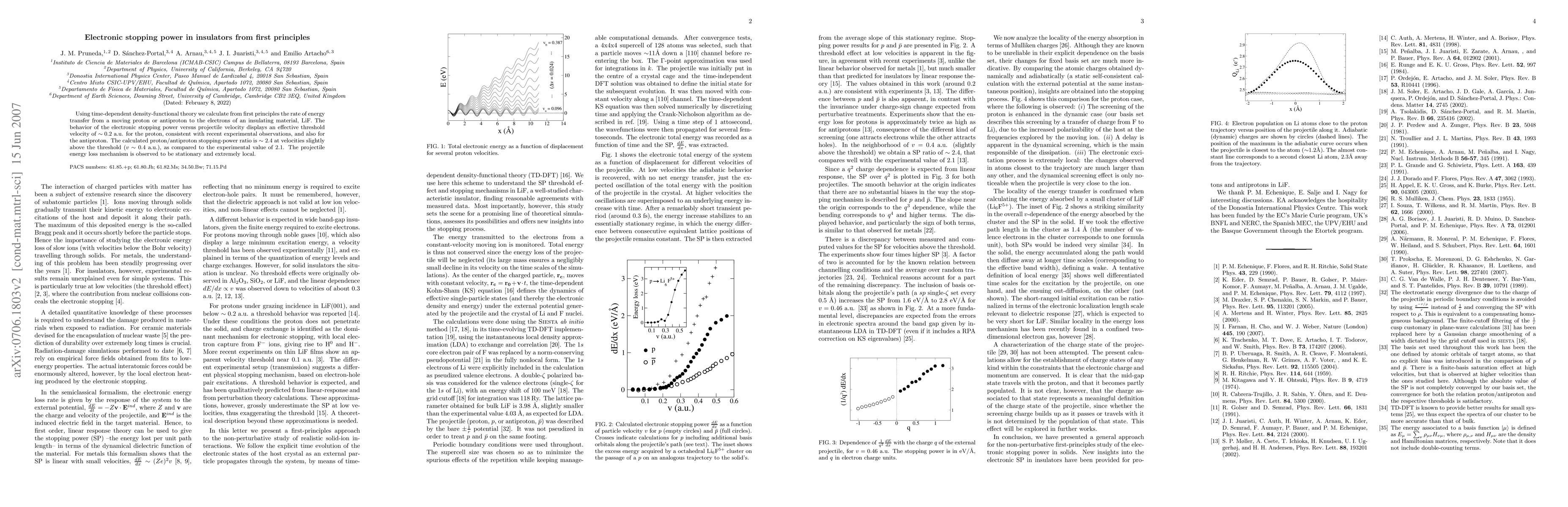 This paper calculates the electronic stopping power of LiF for protons and antiprotons using time-dependent density-functional theory, finding a threshold velocity of ~0.2 a.u. and a stopping-power ratio of ~2.4, closely matching experimental observations. The energy loss mechanism is identified as stationary and highly localized.