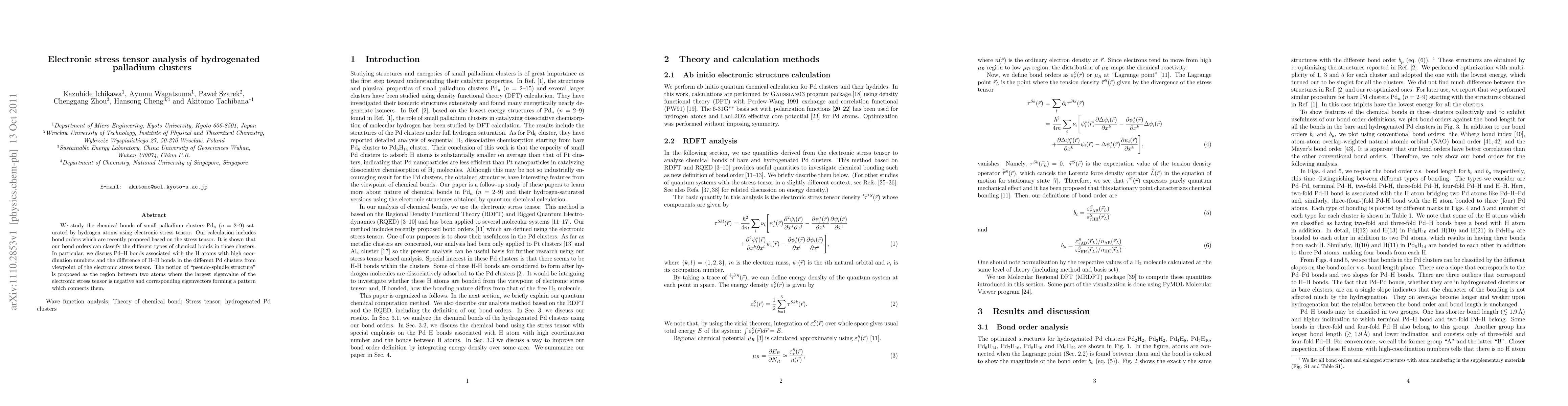 Researchers used electronic stress tensor analysis to study palladium clusters with hydrogen atoms, discovering a 'pseudo-spindle structure' where bond orders can classify different types of chemical bonds.