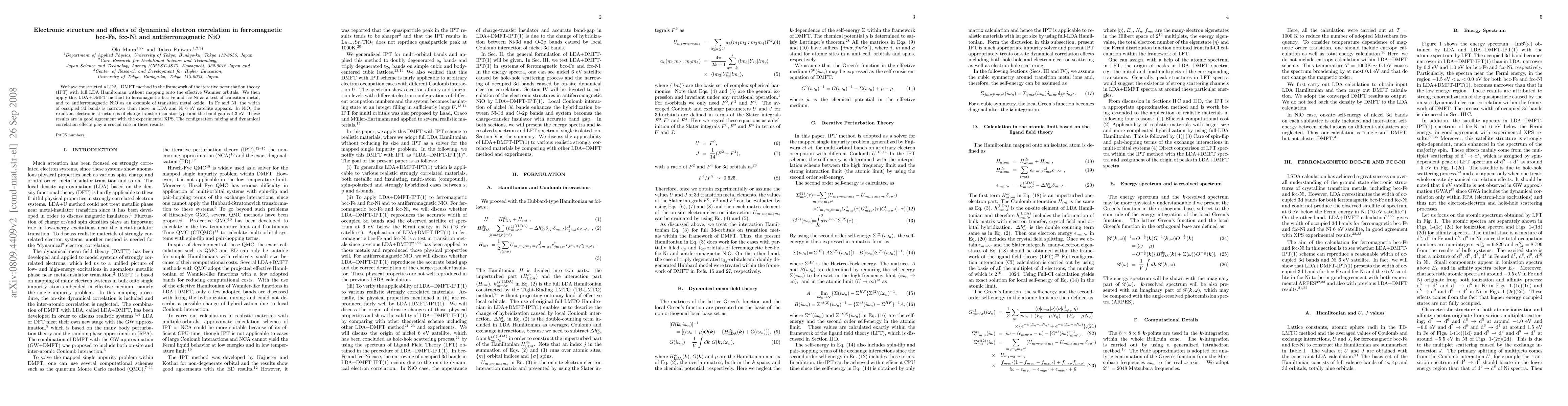 LDA+DMFT method in the framework of the iterative perturbation theory (IPT) with full LDA Hamiltonian without mapping onto the effective Wannier orbitals. We then apply this LDA+DMFT method to ferromagnetic bcc-Fe and fcc-Ni as a test of transition metal, and to antiferromagnetic NiO as an example of transition metal oxide. In Fe and Ni, the width of occupied 3d bands is narrower than those in LDA and Ni 6eV satellite appears. In NiO, the resultant electronic structure is of charge-transfer insulator type and the band gap is 4.3eV. These results are in good agreement with the experimental XPS. The configuration mixing and dynamical correlation effects play a crucial role in these results.