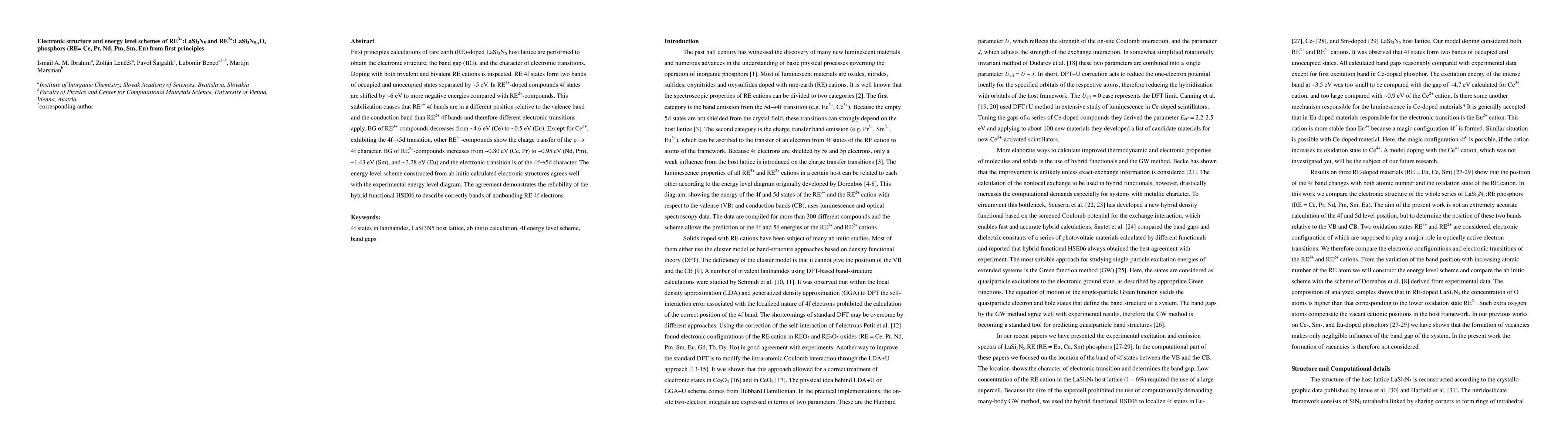Researchers used first-principles calculations to study the electronic structure of rare earth doped LaSi3N5 phosphors, finding that trivalent RE3+ causes a different energy level scheme than bivalent RE2+, with varying band gaps and electronic transitions.