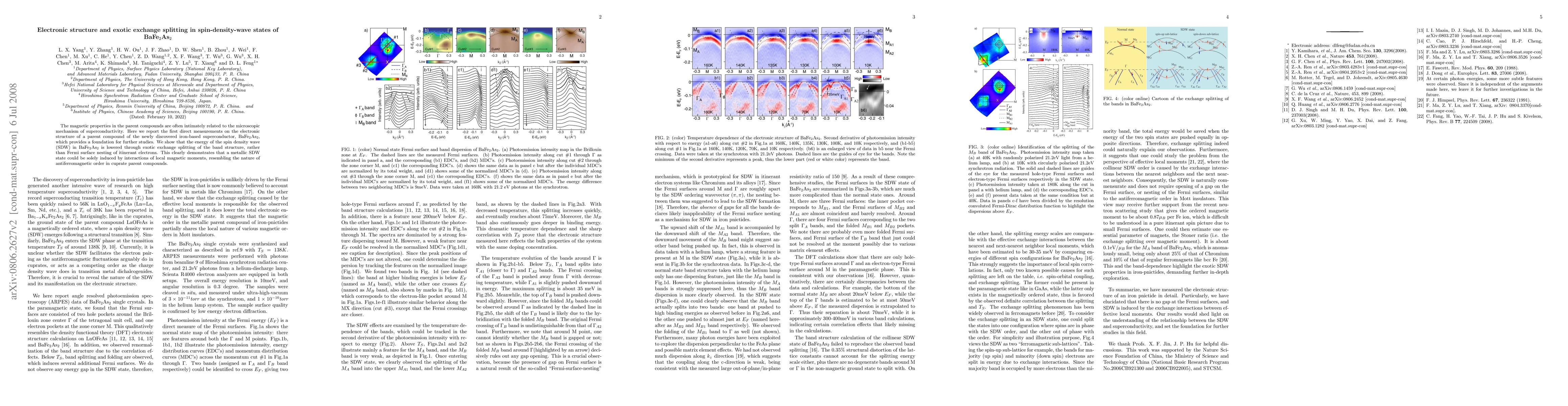 This study reports the first direct measurements of the electronic structure of BaFe$_2$As$_2$, a parent compound of an iron-based superconductor, revealing that its spin-density-wave state is induced by exotic exchange splitting instead of Fermi surface nesting. This finding indicates that metallic spin density wave states can be driven by local magnetic moment interactions similar to those in cuprate parent compounds.