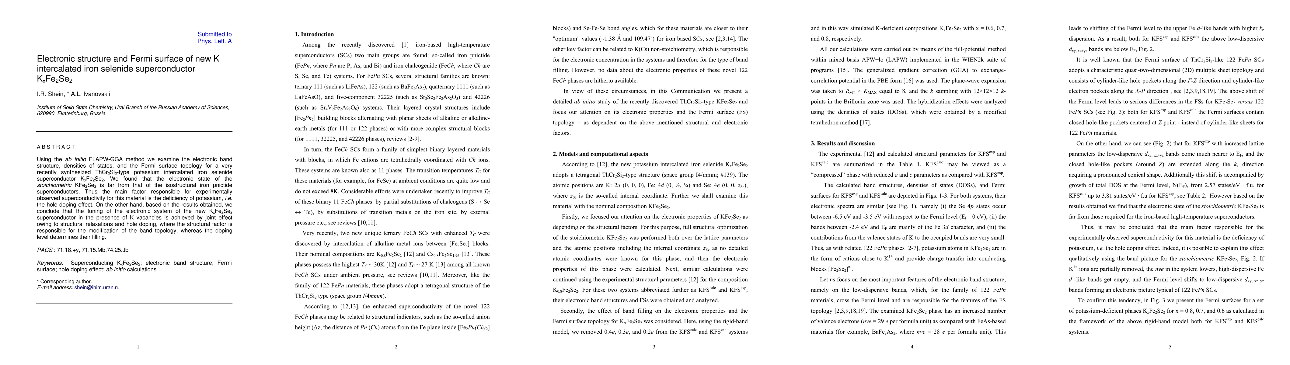 This study uses ab initio FLAPW-GGA methods to analyze the electronic structure of KxFe2Se2, revealing that its electronic state differs significantly from isostructural iron pnictide superconductors. The observed superconductivity is primarily due to potassium deficiency, indicating hole doping as the main factor.