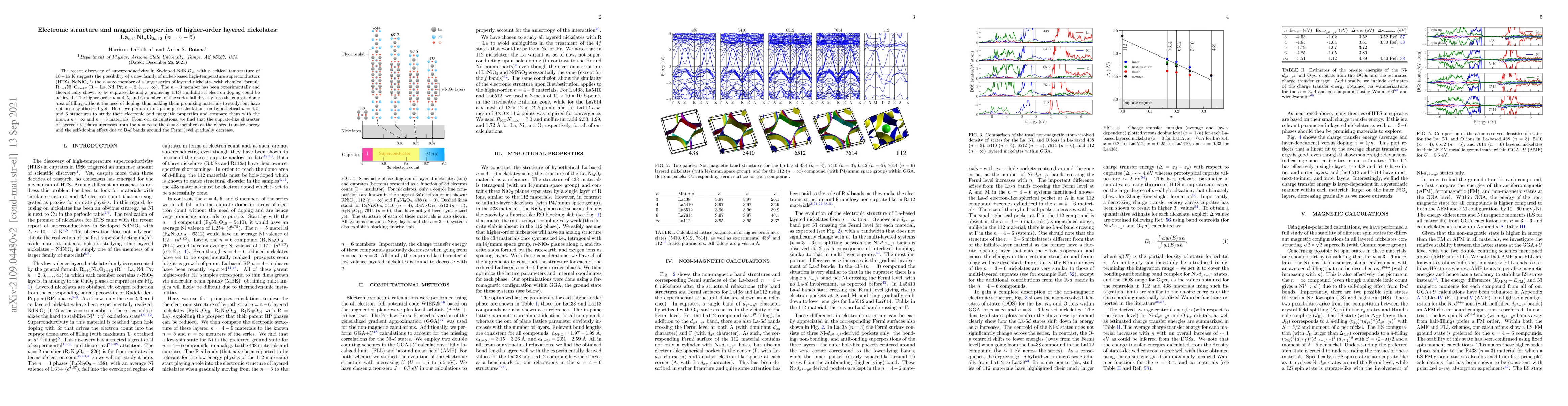 The recent discovery of superconductivity in Sr-doped NdNiO$_2$, with a critical temperature of $10-15$ K suggests the possibility of a new family of nickel-based high-temperature superconductors (HTS). NdNiO$_{2}$ is the $n=\infty$ member of a larger series of layered nickelates with chemical formula R$_{n+1}$Ni$_{n}$O$_{2n+2}$ (R $=$ La, Nd, Pr; $n = 2, 3, \dots, \infty$). The $n=3$ member has been experimentally and theoretically shown to be cuprate-like and a promising HTS candidate if electron doping could be achieved. The higher-order $n=4,5,$ and $6$ members of the series fall directly into the cuprate dome area of filling without the need of doping, thus making them promising materials to study, but have not been synthesized yet. Here, we perform first-principles calculations on hypothetical $n=4,5,$ and $6$ structures to study their electronic and magnetic properties and compare them with the known $n=\infty$ and $n=3$ materials. From our calculations, we find that the cuprate-like character of layered nickelates increases from the $n=\infty$ to the $n=3$ members as the charge transfer energy and the self-doping effect due to R-$d$ bands around the Fermi level gradually decrease.