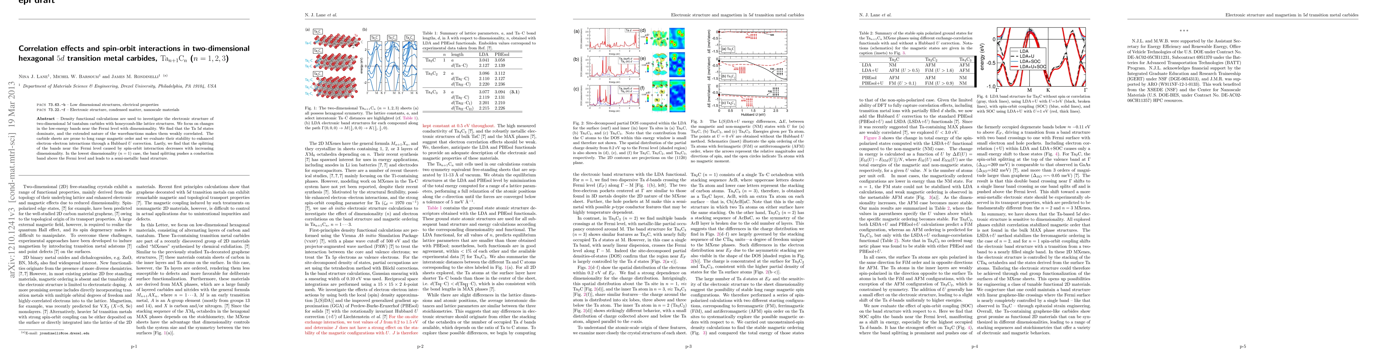 Research on 2D hexagonal 5d transition metal carbides reveals that Ta 5d states dominate the electronic structure, but weakly correlated due to extended wavefunctions. These materials are prone to long-range magnetic order and show significant renormalization of band structures under Hubbard U correction and spin-orbit interactions.