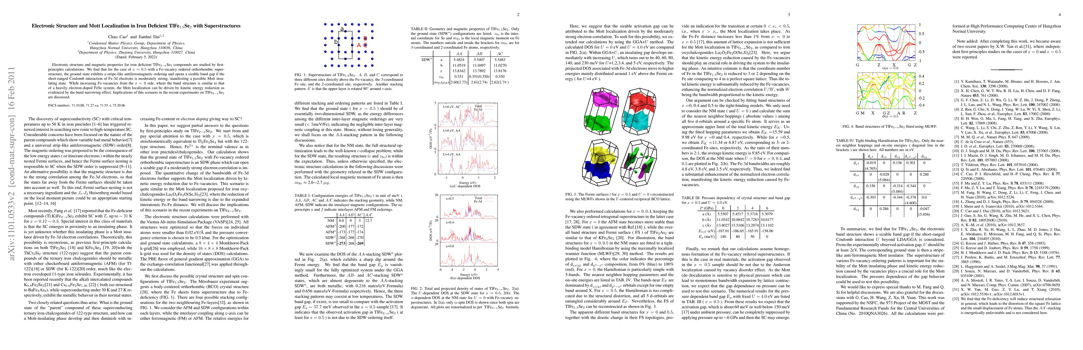 This research investigates the electronic structure and magnetic properties of iron deficient TlFe$_{2-x}$Se$_2$ using first-principles calculations. It finds that for $x=0.5$, a Fe-vacancy ordered orthorhombic superstructure leads to a stripe-like antiferromagnetic ordering and a band gap, indicating a potential Mott insulating state, while increasing vacancies drive Mott localization through kinetic energy reduction.