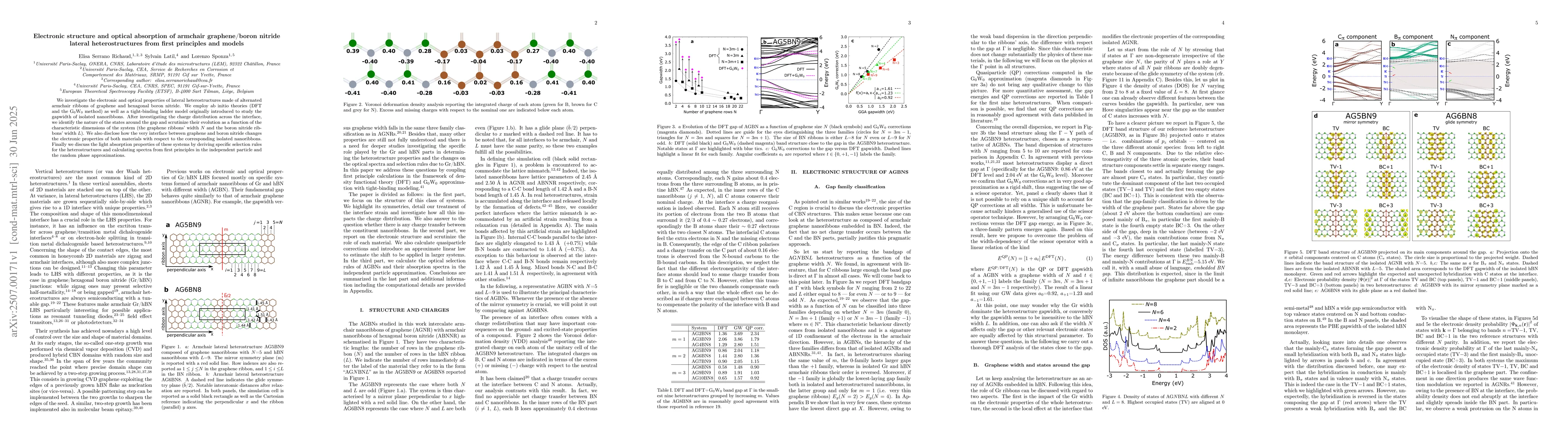 We investigate the electronic and optical properties of lateral heterostructures made of alternated armchair ribbons of graphene and hexagonal boron nitride. We employ ab initio theories (DFT and the G0W0 method) as well as a tight-binding ladder model originally introduced to study the gapwidth of isolated nanoribbons. After investigating the charge distribution across the interface, we identify the nature of the states around the gap and scrutinize their evolution as a function of the characteristic dimensions of the system (the graphene ribbons' width N and the boron nitride ribbons' width L). We also disclose how the very interface between graphene and boron nitride changes the electronic properties of both materials with respect to the corresponding isolated nanoribbons. Finally we discuss the light absorption properties of these systems by deriving specific selection rules for the heterostructures and calculating spectra from first principles in the independent particle and the random phase approximations