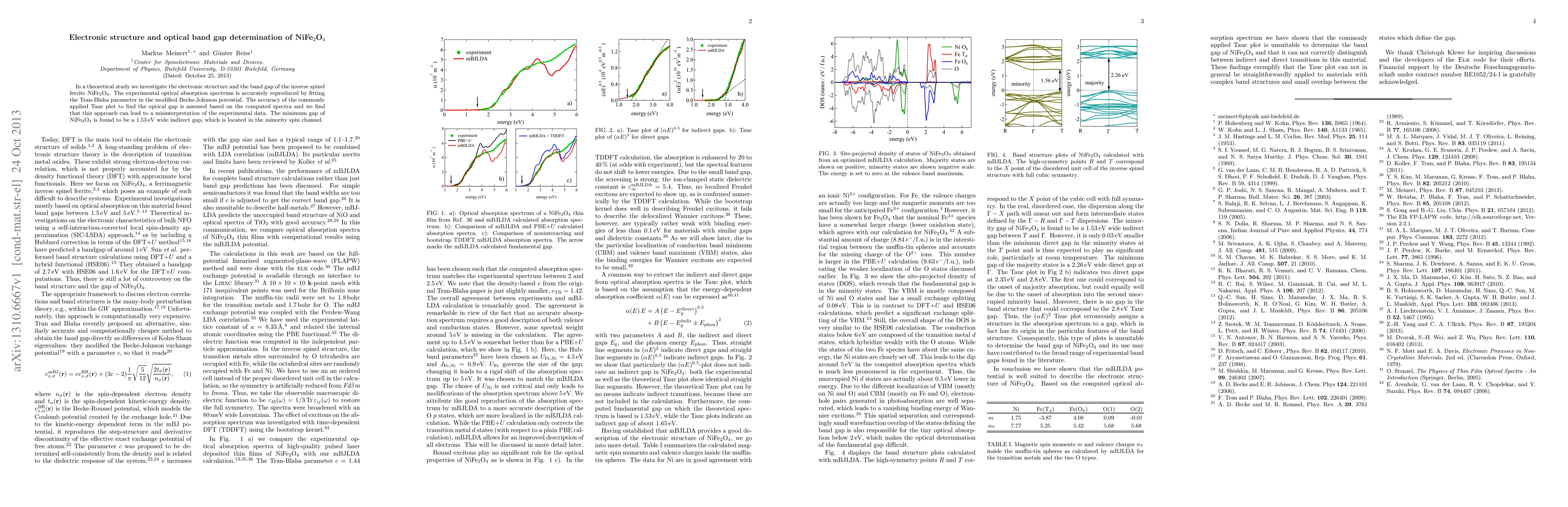 In a theoretical study we investigate the electronic structure and the band gap of the inverse spinel ferrite NiFe2O4. The experimental optical absorption spectrum is accurately reproduced by fitting the Tran-Blaha parameter in the modified Becke-Johnson potential. The accuracy of the commonly applied Tauc plot to find the optical gap is assessed based on the computed spectra and we find that this approach can lead to a misinterpretation of the experimental data. The minimum gap of NiFe2O4 is found to be a 1.53eV wide indirect gap, which is located in the minority spin channel.