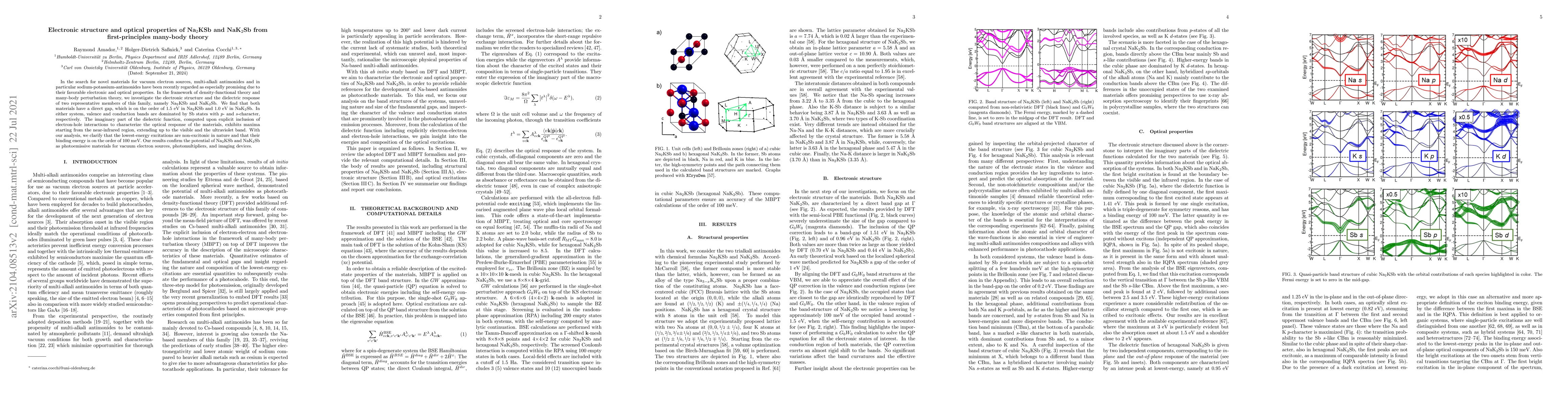 The paper presents a comprehensive analysis of the electronic structure and optical properties of Na2KSb and NaK2Sb using advanced theoretical methods, including DFT and MBPT.
