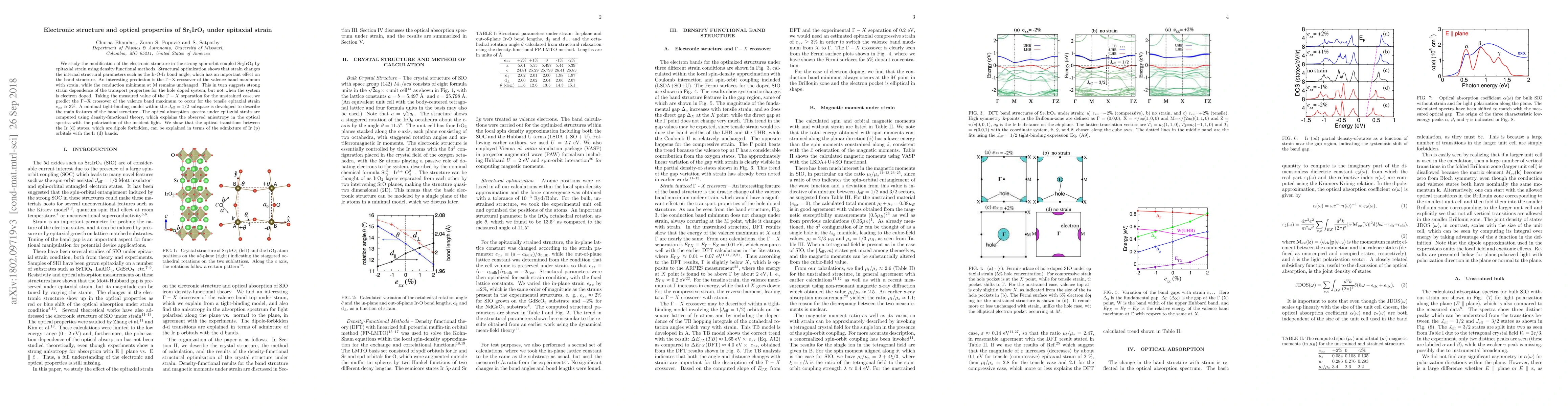 We study the modification of the electronic structure in the strong spin-orbit coupled Sr$_2$IrO$_4$ by epitaxial strain using density functional methods. Structural optimization shows that strain changes the internal structural parameters such as the Ir-O-Ir bond angle, which has an important effect on the band structure. An interesting prediction is the $\Gamma - $X crossover of the valence band maximum with strain, while the conduction minimum at M remains unchanged. This in turn suggests strong strain dependence of the transport properties for the hole doped system, but not when the system is electron-doped. Taking the measured value of the $\Gamma-X$ separation for the unstrained case, we predict the $\Gamma - $X crossover of the valence band maximum to occur for the tensile epitaxial strain $e_{xx} \approx 3\%$. A minimal tight-binding model within the $J_{\rm eff} = 1/2$ subspace is developed to describe the main features of the band structure. The optical absorption spectra under epitaxial strain are computed using density-functional theory, which explains the observed anisotropy in the optical spectra with the polarization of the incident light. We show that the optical transitions between the Ir (d) states, which are dipole forbidden, can be explained in terms of the admixture of Ir (p) orbitals with the Ir (d) bands.