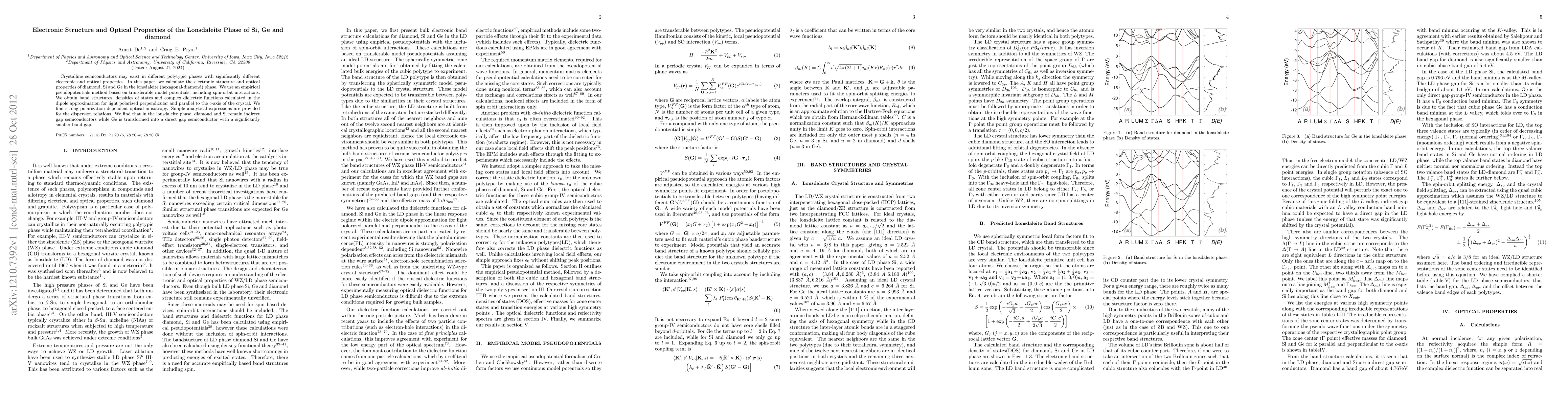 This paper investigates the electronic structure and optical properties of diamond, silicon, and germanium in their lonsdaleite (hexagonal-diamond) phase using an empirical pseudopotentials method. It reveals strong polarization-dependent optical anisotropy and shows that while diamond and silicon retain indirect band gaps, germanium becomes a direct gap semiconductor with a smaller band gap.