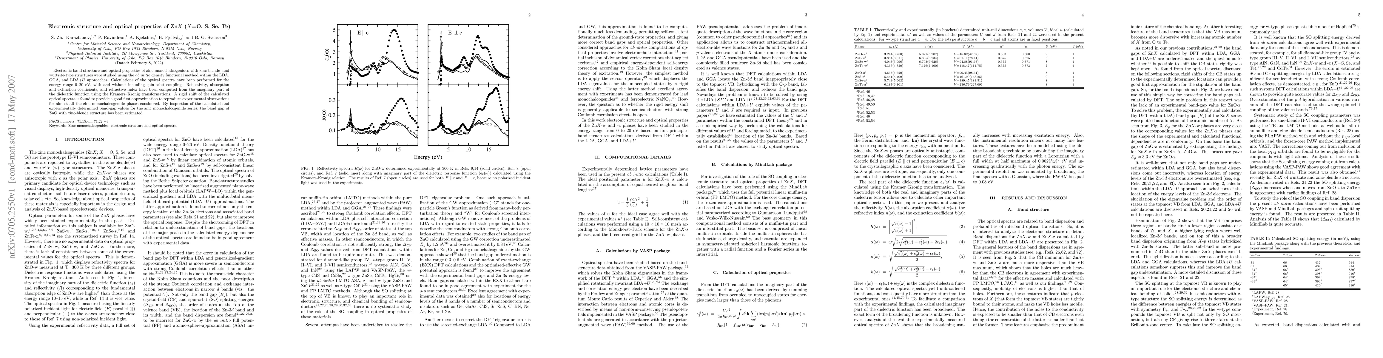 This study uses computational methods to analyze the electronic structure and optical properties of zinc monochalcogenides with different crystal structures, finding a good match between calculated and experimental data with a simple shift of the spectra.