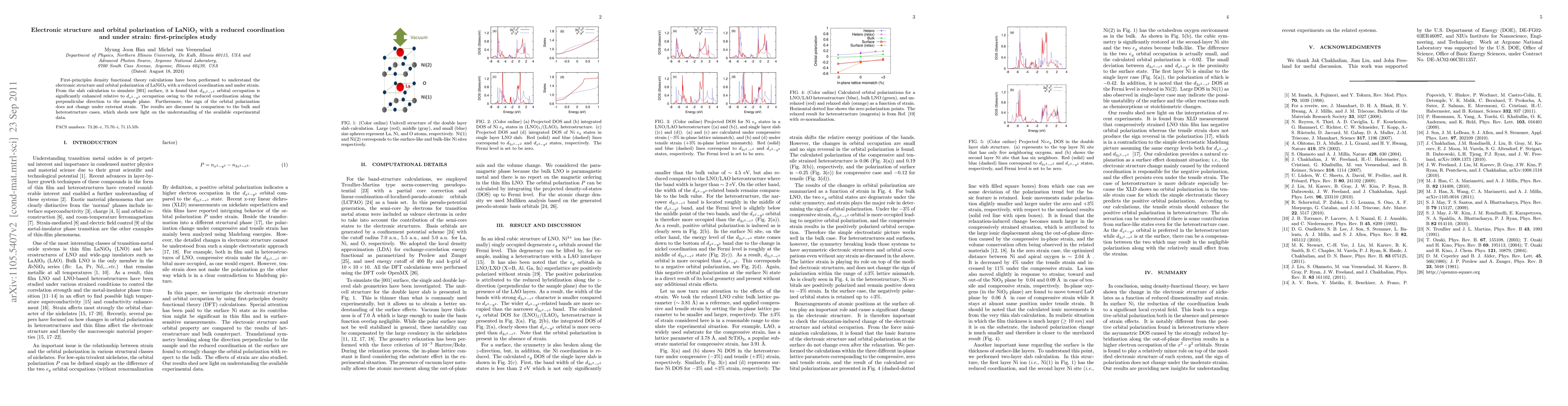 First-principles density functional theory calculations have been performed to understand the electronic structure and orbital polarization of LaNiO$_3$ with a reduced coordination and under strain. From the slab calculation to simulate [001] surface, it is found that $d_{3z^2-r^2}$ orbital occupation is significantly enhanced relative to $d_{x^2-y^2}$ occupation owing to the reduced coordination along the perpendicular direction to the sample plane. Furthermore, the sign of the orbital polarization does not change under external strain. The results are discussed in comparison to the bulk and heterostructure cases, which sheds new light on the understanding of the available experimental data.
